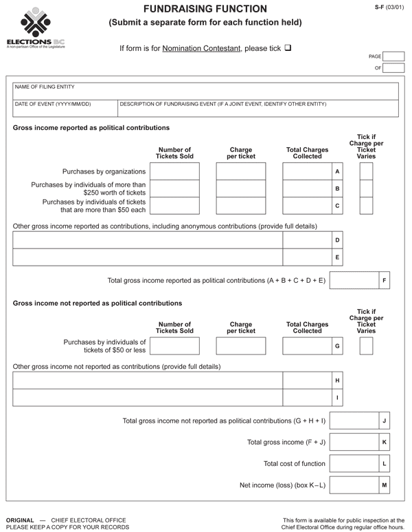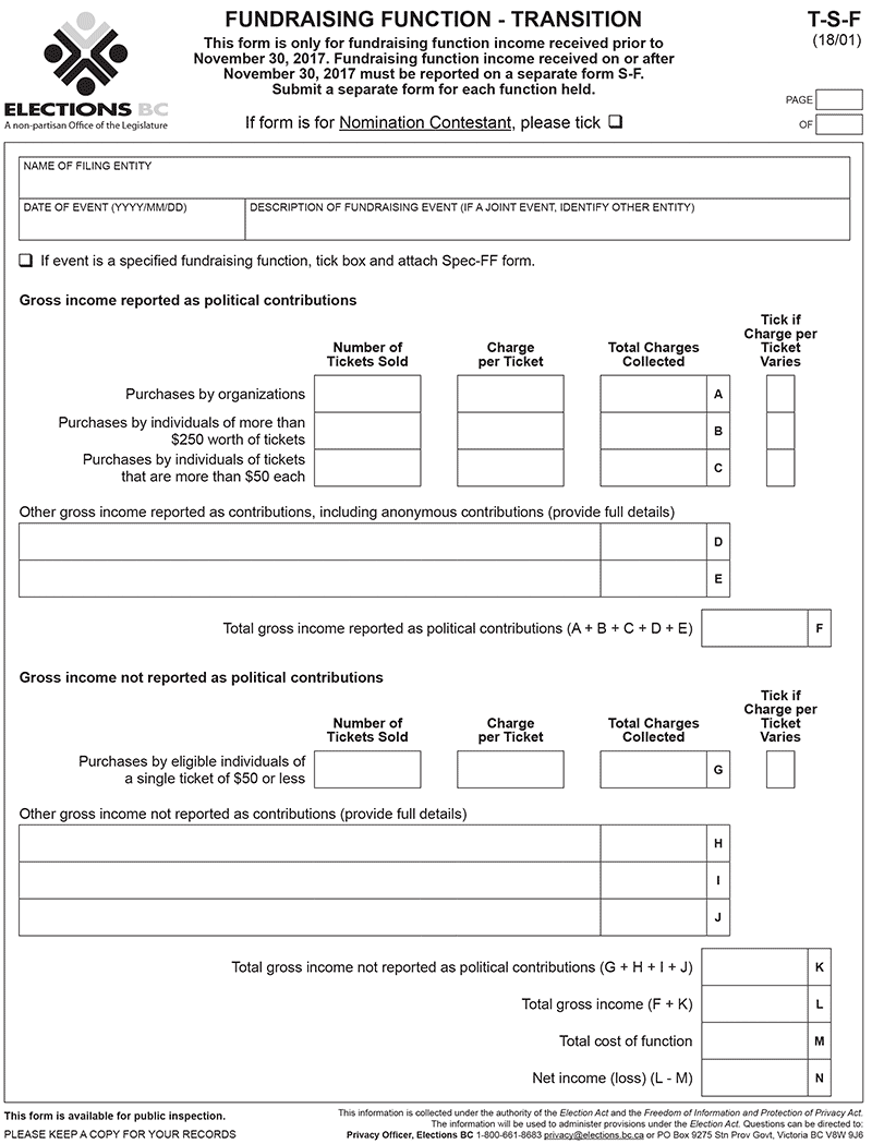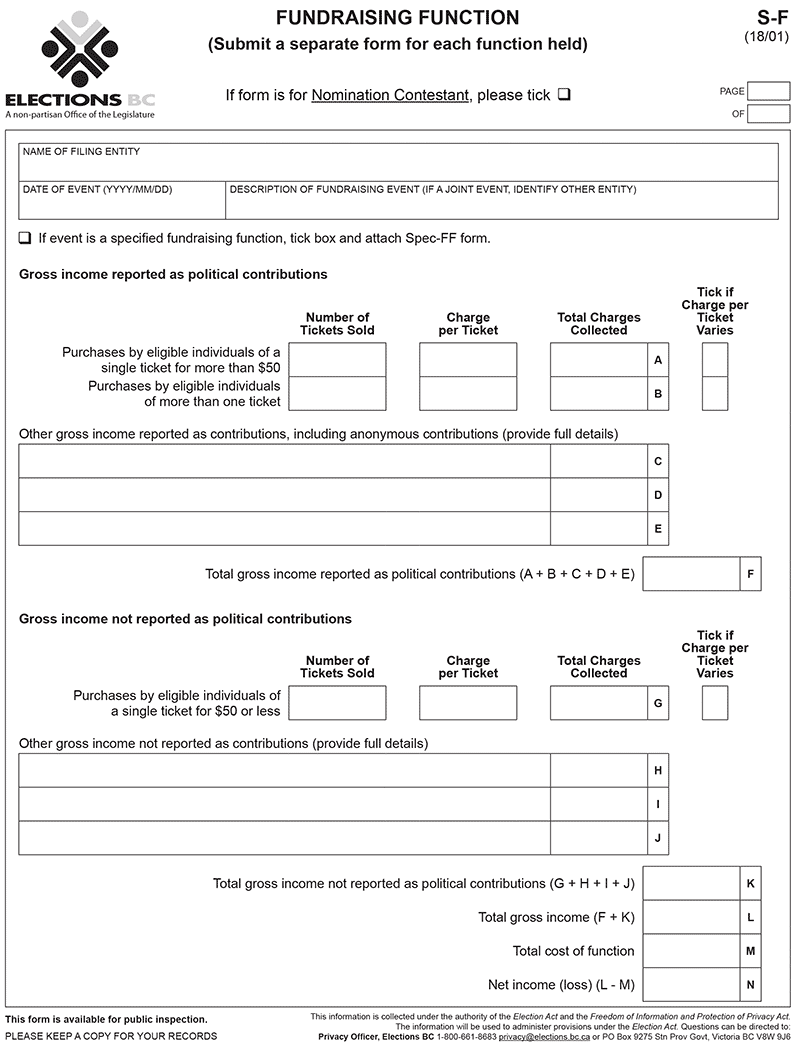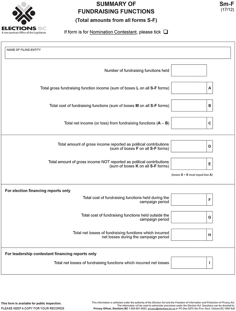 Schedule forms "Summary of Fundraising Functions" was repealed by BC Reg 124/2011, effective July 14, 2011.