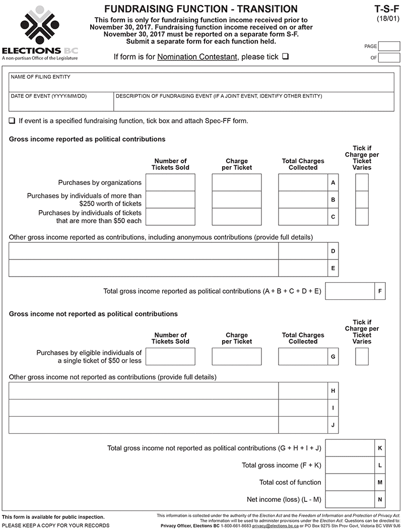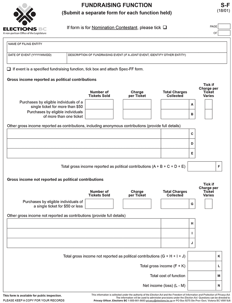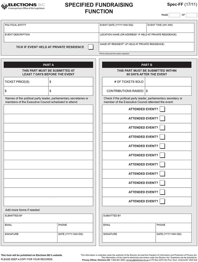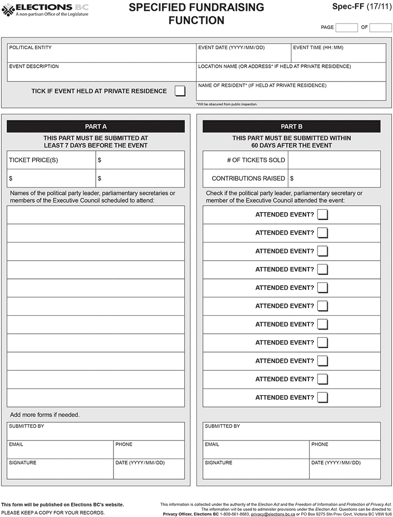 Schedule 1 forms "Summary of Fundraising Functions" and "Statement of Income and Expenses" were amended by BC Reg 124/2011, effective July 14, 2011.