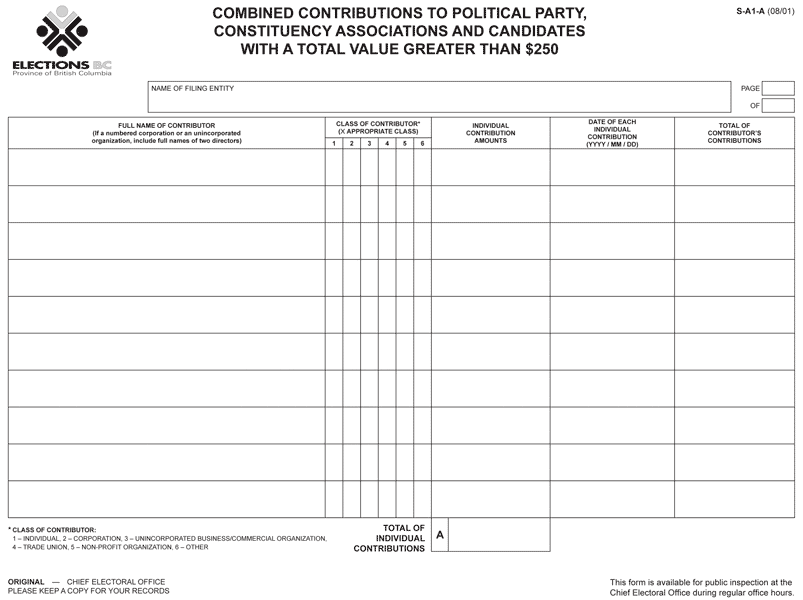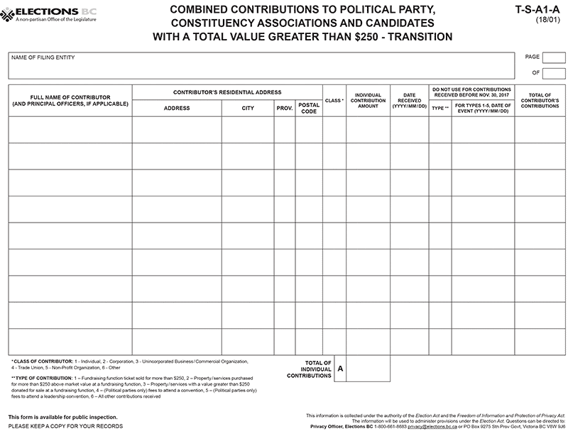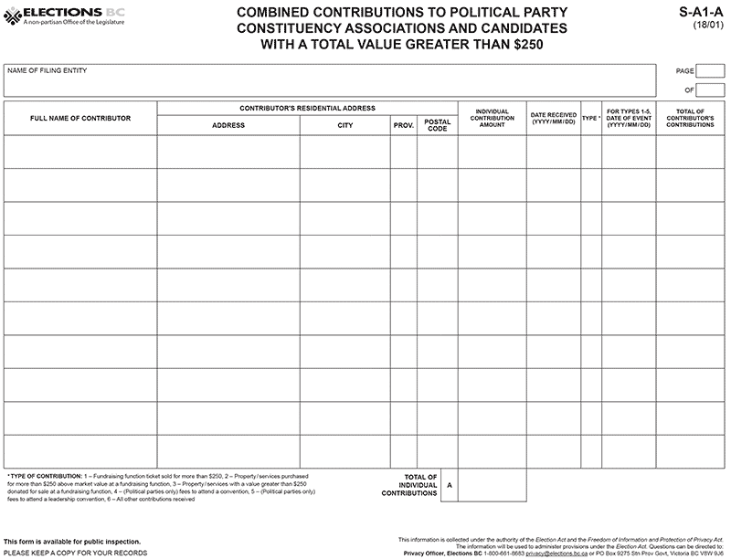 Combined Contributions to Political Party, Constituency Associations and Candidates with a Total Value Greater than $250
