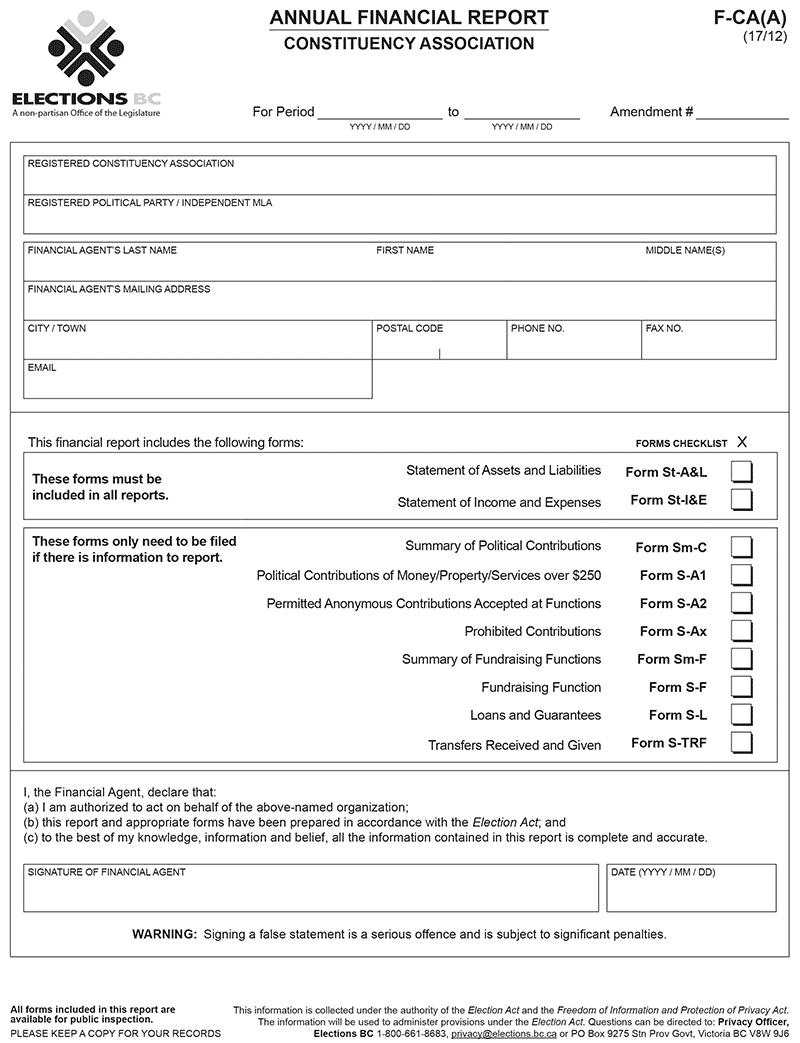 3 A financial report under section 207 of the Act for a constituency association must be in the form attached as Schedule 2 to this regulation.