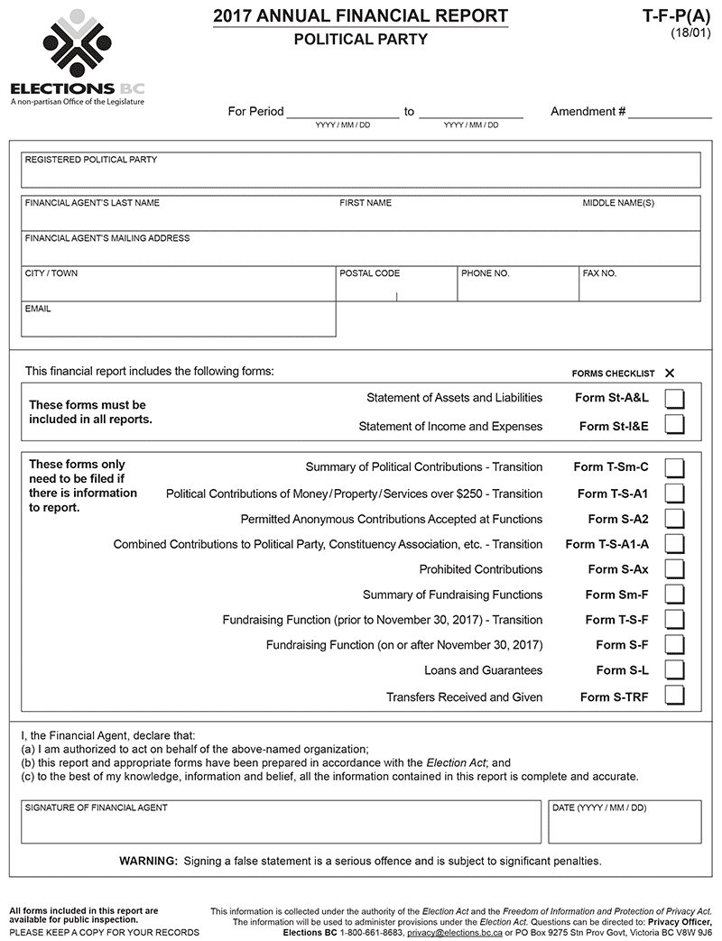 2.1 (1) As an exception to section 2, a financing report under section 207 of the Act for a political party for 2017 must be in the form set out in Schedule 3 to this regulation.