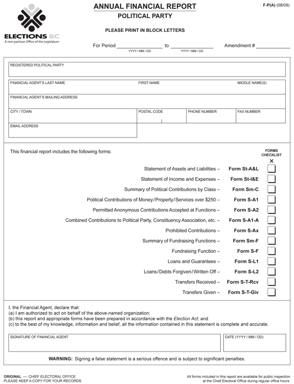 2 A financial report under section 207 of the Act for a political party must be in the form attached as Schedule 1 to this regulation.
