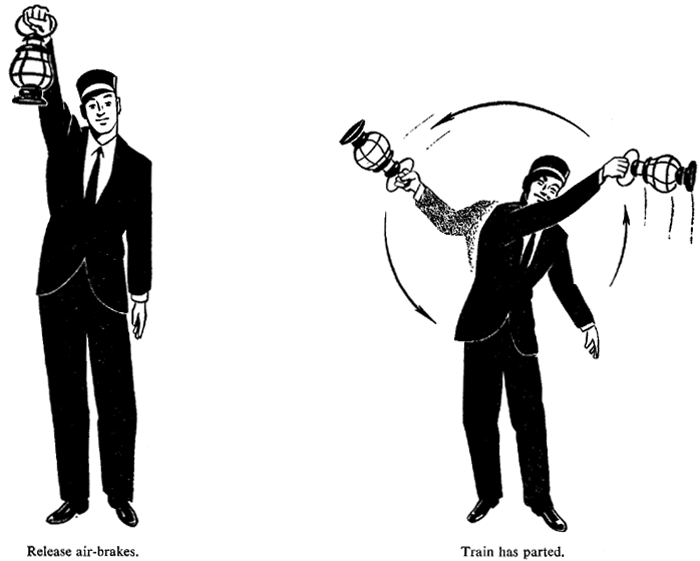 | (d) | Swung vertically in a circle at arm's length across the track when the train is running | Train has parted. | |