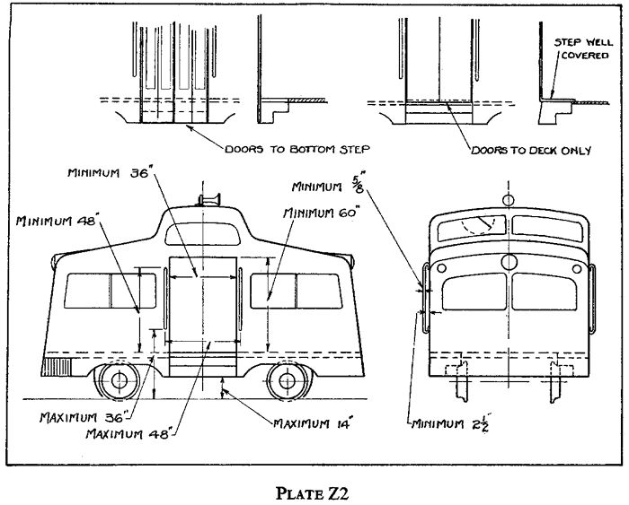 202 Where used, end platforms shall conform to the general arrangement shown herein on Plate Z4. End handrails shall be not less than one inch in diameter, with a minimum height of 3 feet from the platforms. Where end platforms are used, side steps and handrails shall be provided on each side of the locomotive. The steps shall be of material other than wood, and the tread surface shall be of anti-skid design and constructed with sufficient open space to permit the elimination of snow and ice from the tread surface. Handrails shall exist on both sides of steps at appropriate heights and of the general design as shown herein on Plate Z4.