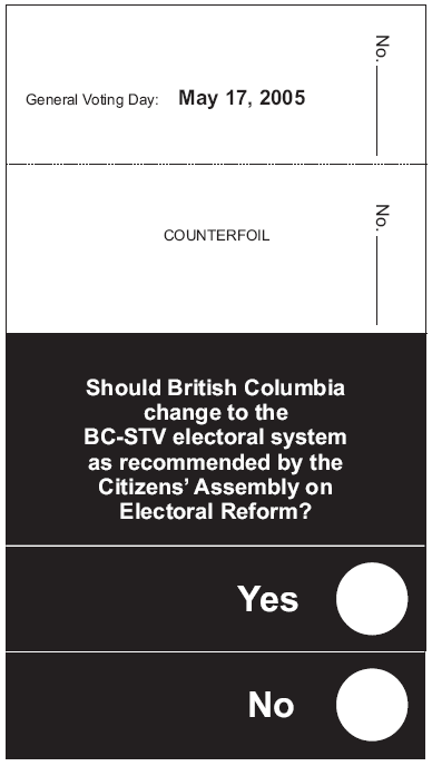 9 A copy of the Final Report of the British Columbia Citizens' Assembly on Electoral Reform must be available for voters at each voting opportunity.