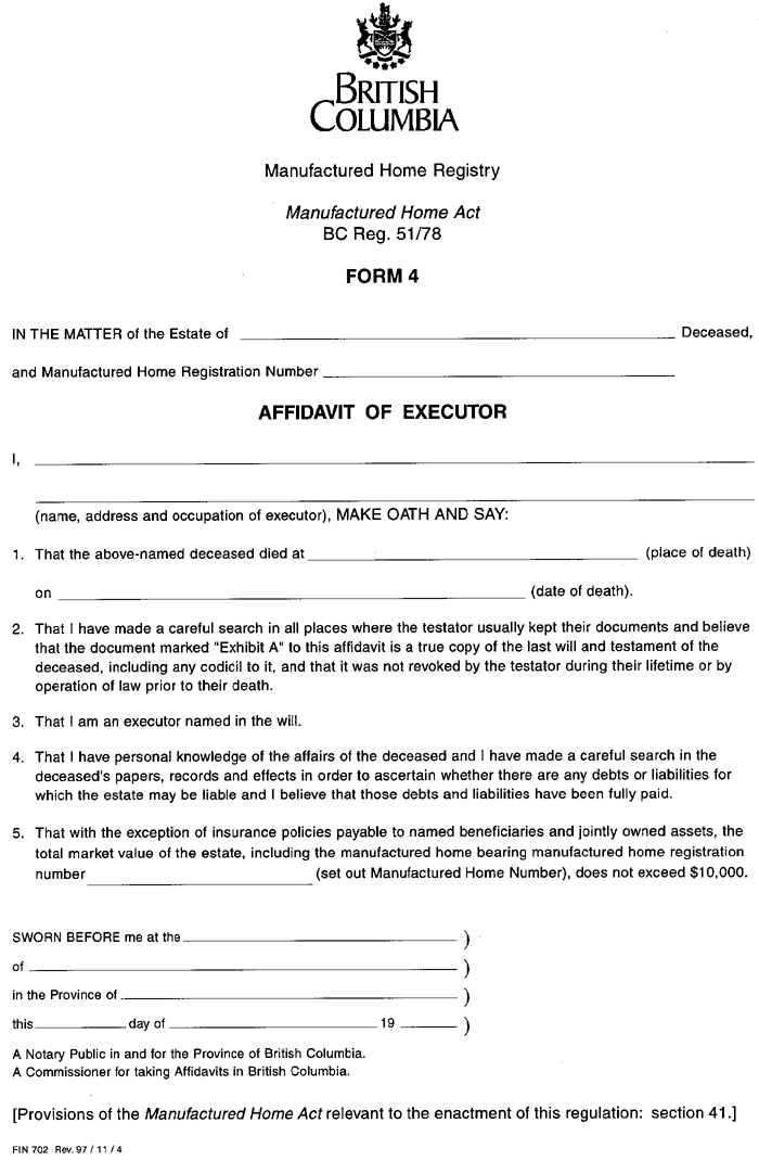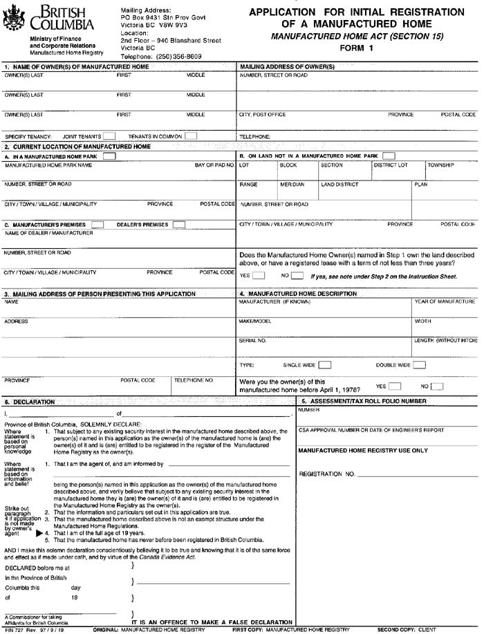 (8.1) Despite subsection (8), an applicant for registration who is the manufacturer of a manufactured home is not required to have the information provided in Form 1 declared before a Commissioner for taking Affidavits for British Columbia.