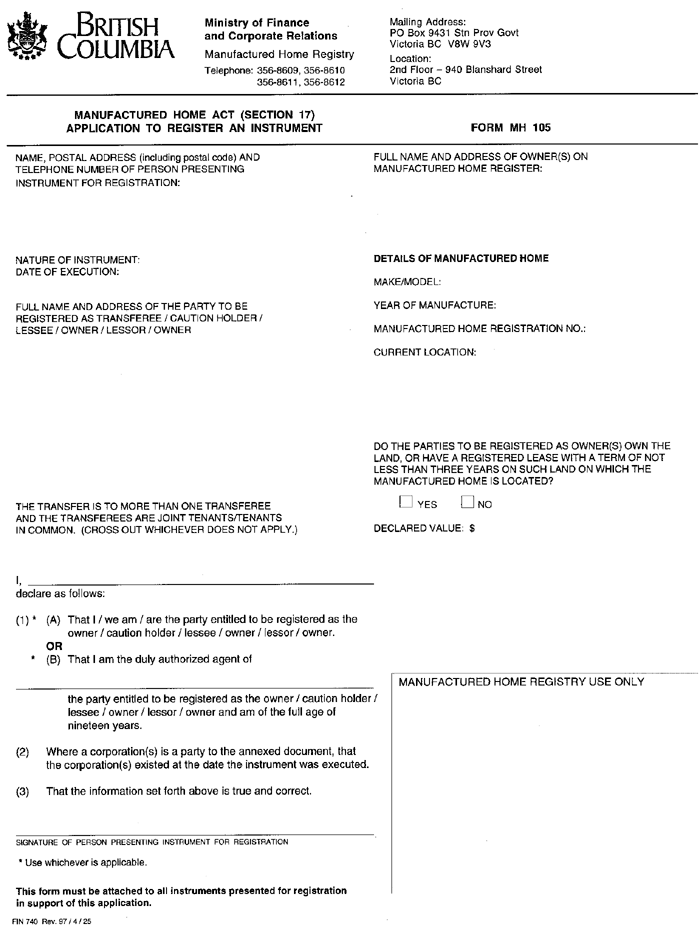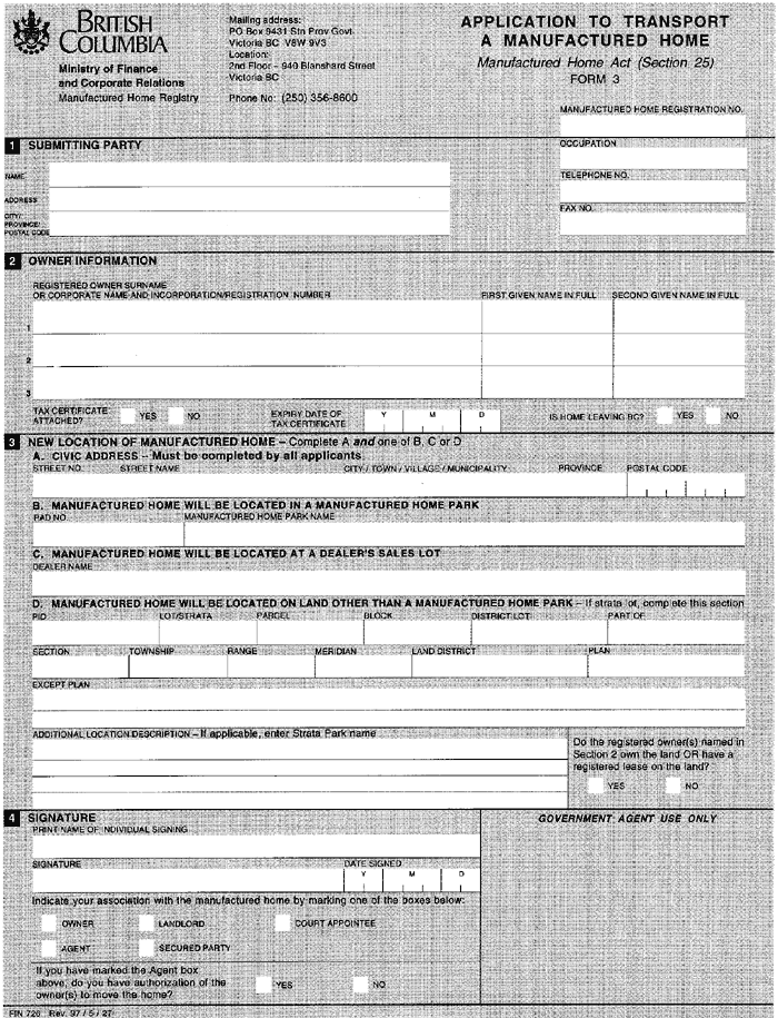 (9) An application for registration of a transfer of a manufactured home under section 17 of the Act must be in Form 2.