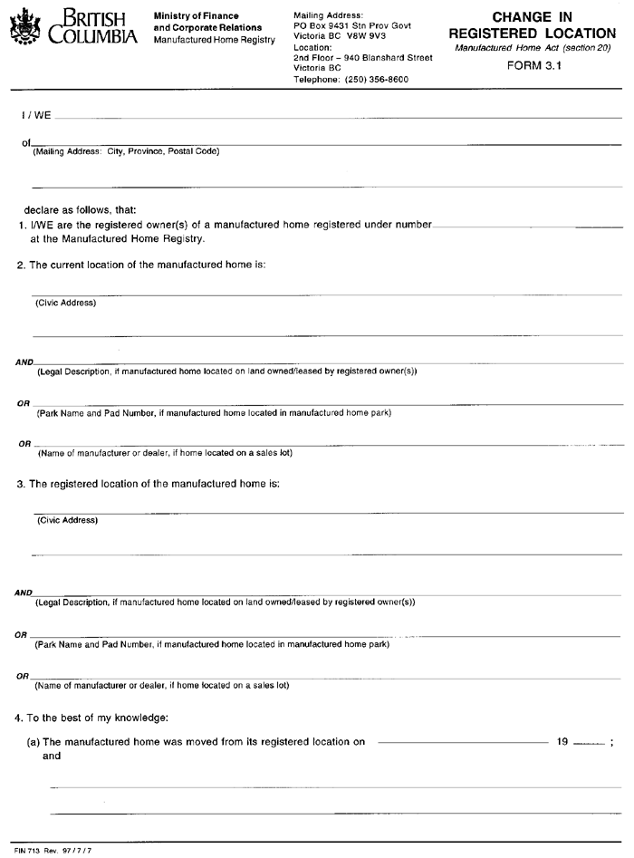 (11.3) Form 3.1 is the prescribed form for the purposes of section 20 (1) (b) (i) of the Act.