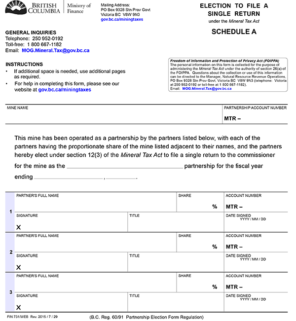 1 The form attached as Schedule A is prescribed for use pursuant to section 12 (3) of the Mineral Tax Act.