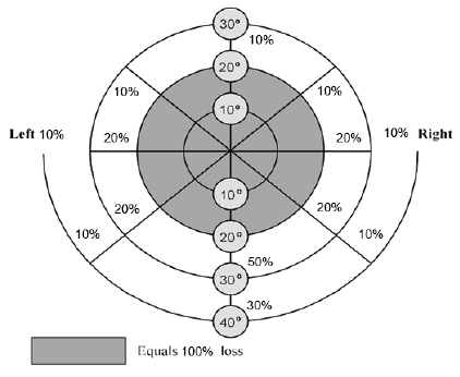 (iv) loss of vision that is determined to result in a percentage, using the method described in subsection (1), of 50% or more but less than 80%;