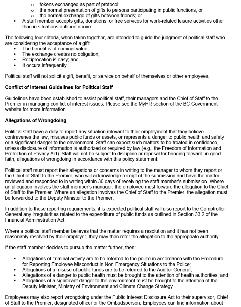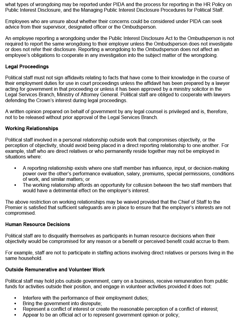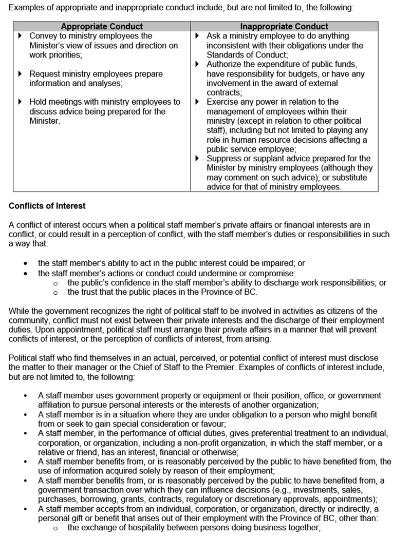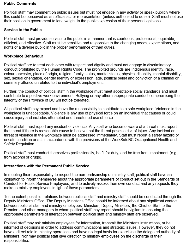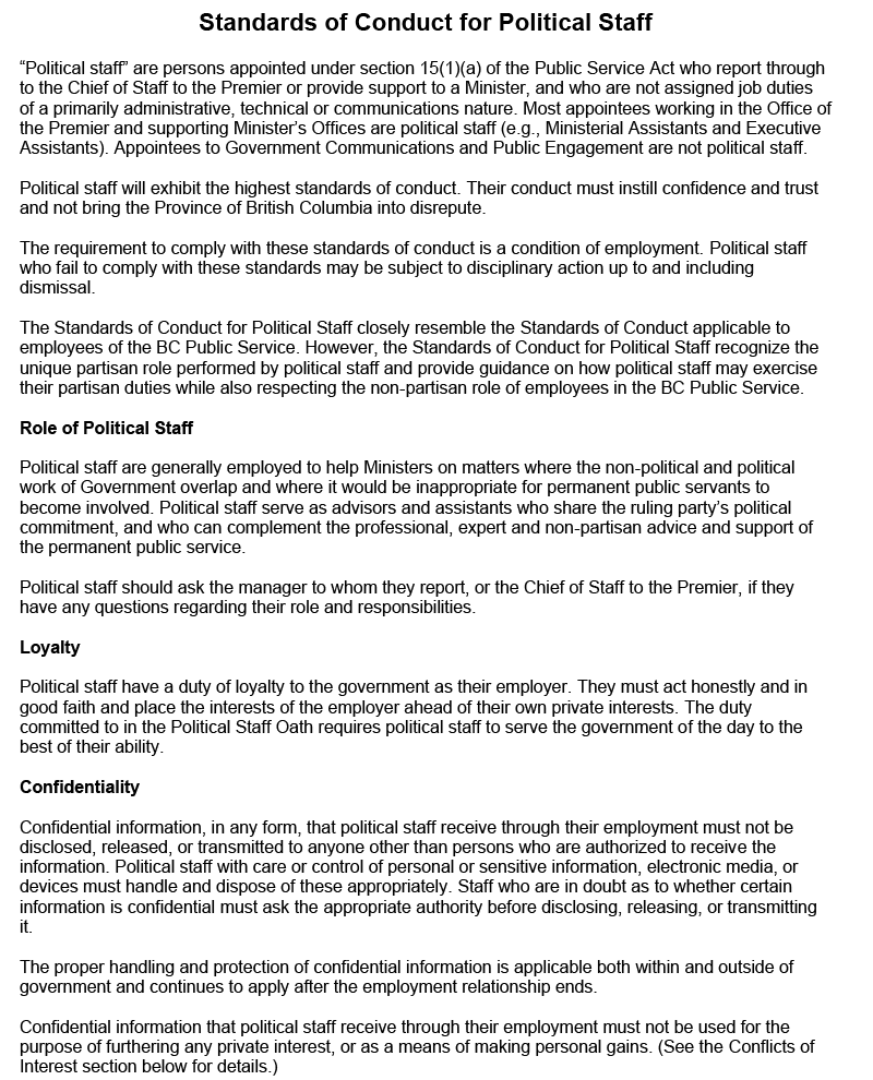 1 The Standards of Conduct for Political Staff set out in the Schedule to this regulation are terms and conditions of employment for political staff members.