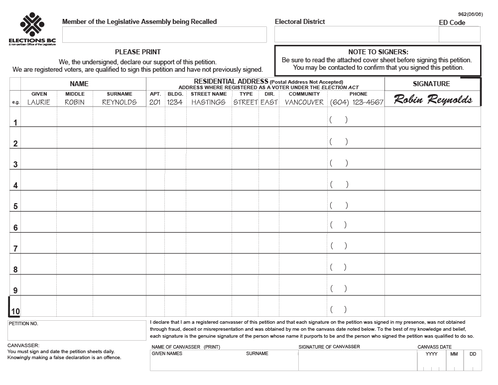 [Provisions relevant to the enactment of this regulation: Recall and Initiative Act, R.S.B.C. 1996, c. 398, s. 171.]
