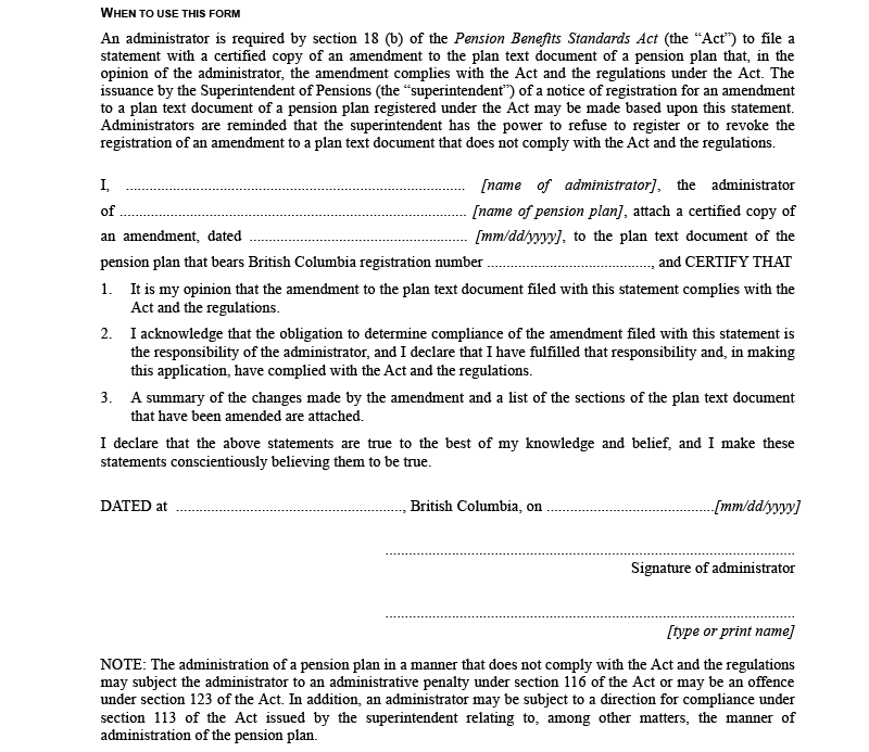 [Provisions relevant to the enactment of this regulation: Pension Benefits Standards Act, S.B.C. 2012, c. 30, ss. 45 (2), 52 (2) and 133.]