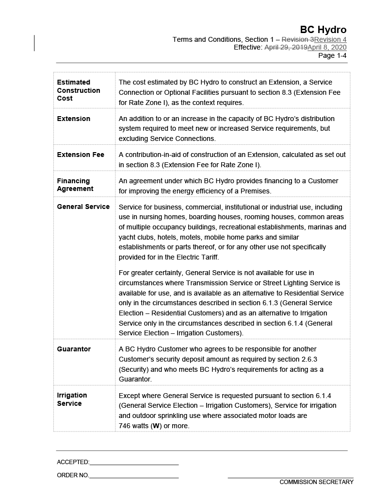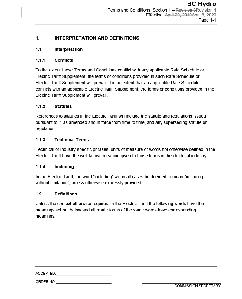 (a) so that the authority's Electric Tariff is amended as set out in Appendix A to this direction, and