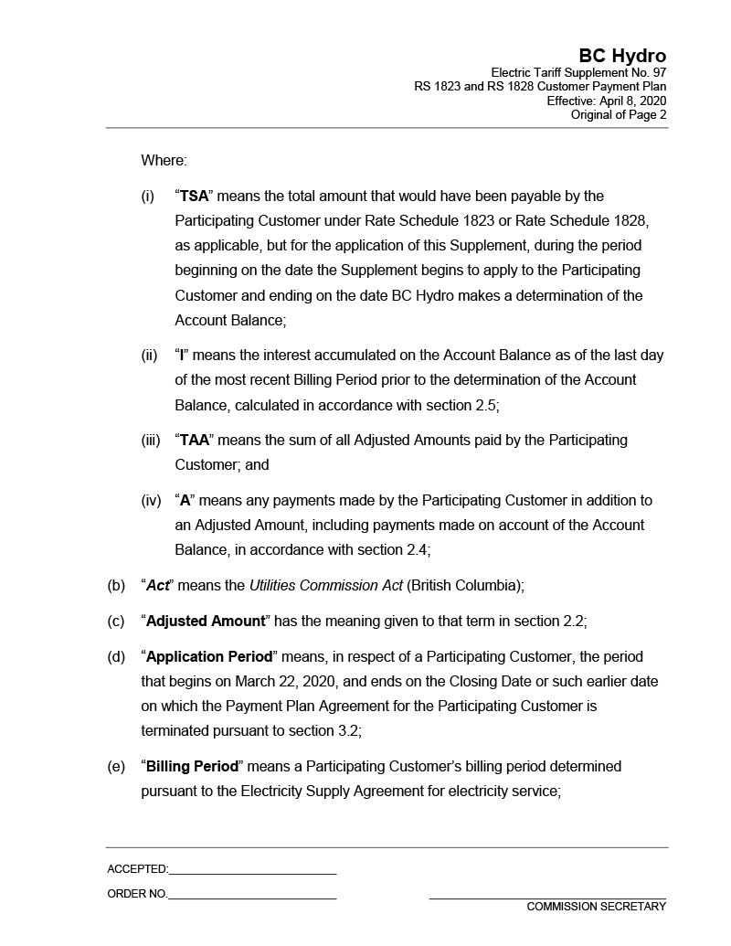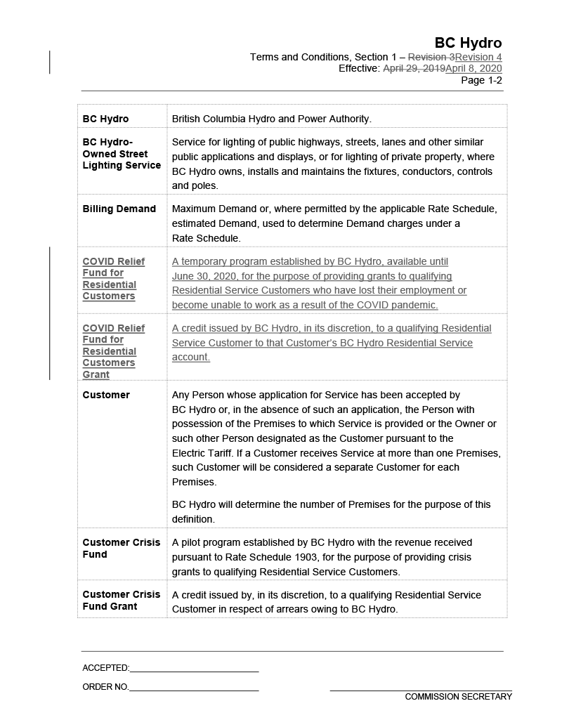 "customer crisis fund rate rider" means the rate rider established in relation to the customer crisis fund in Rate Schedule 1903, as approved by commission order G-166-17;