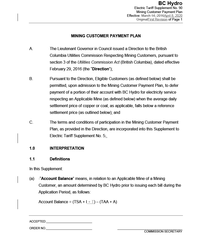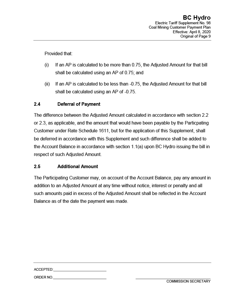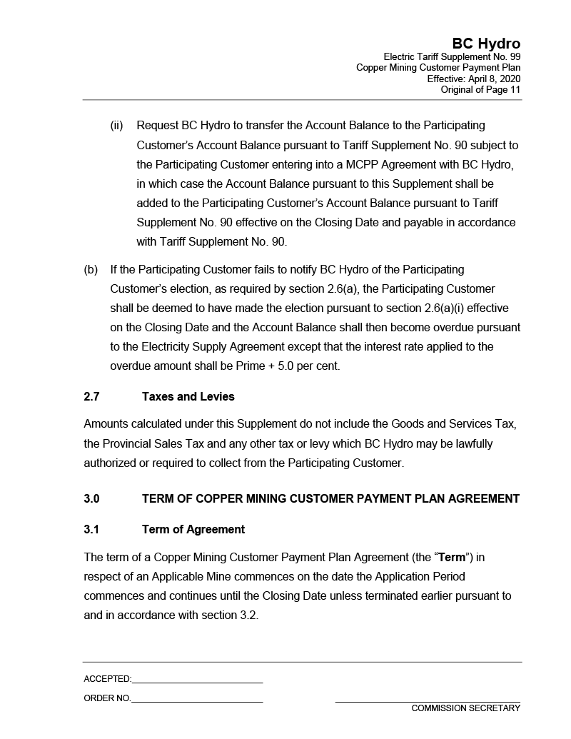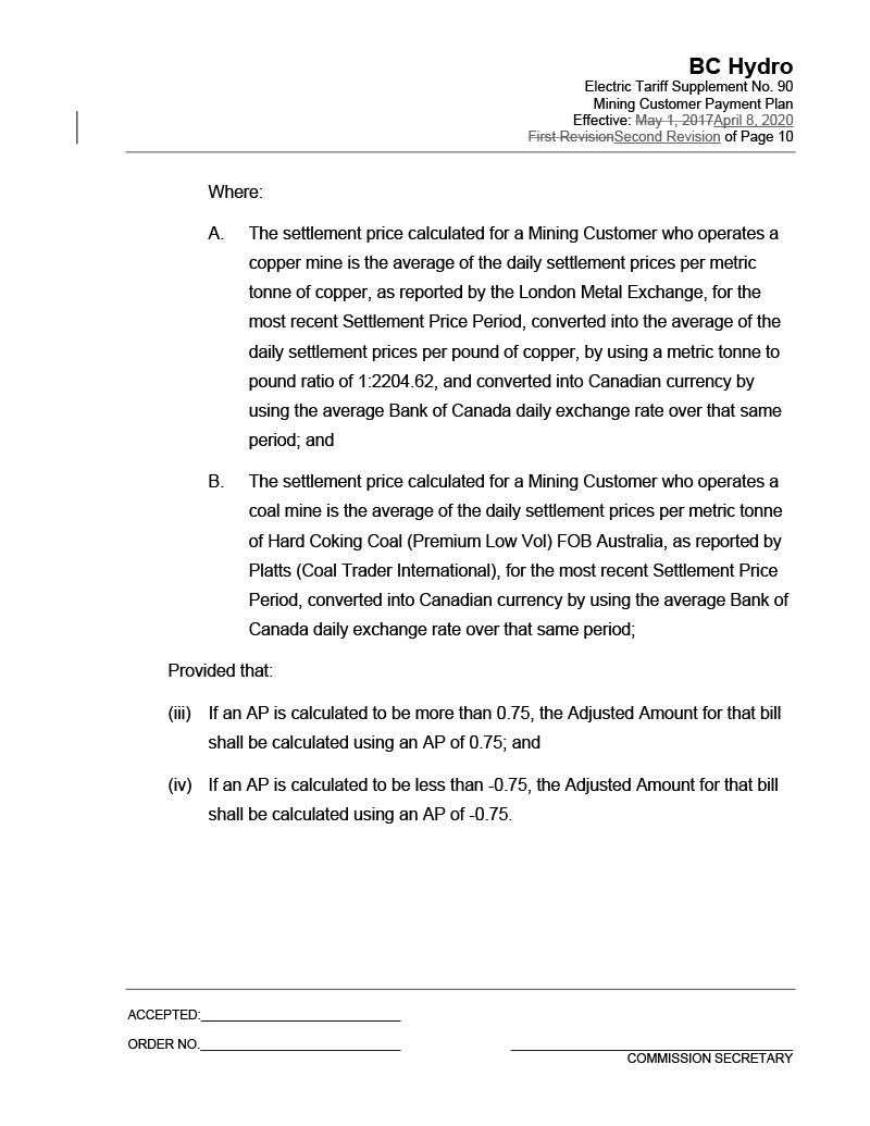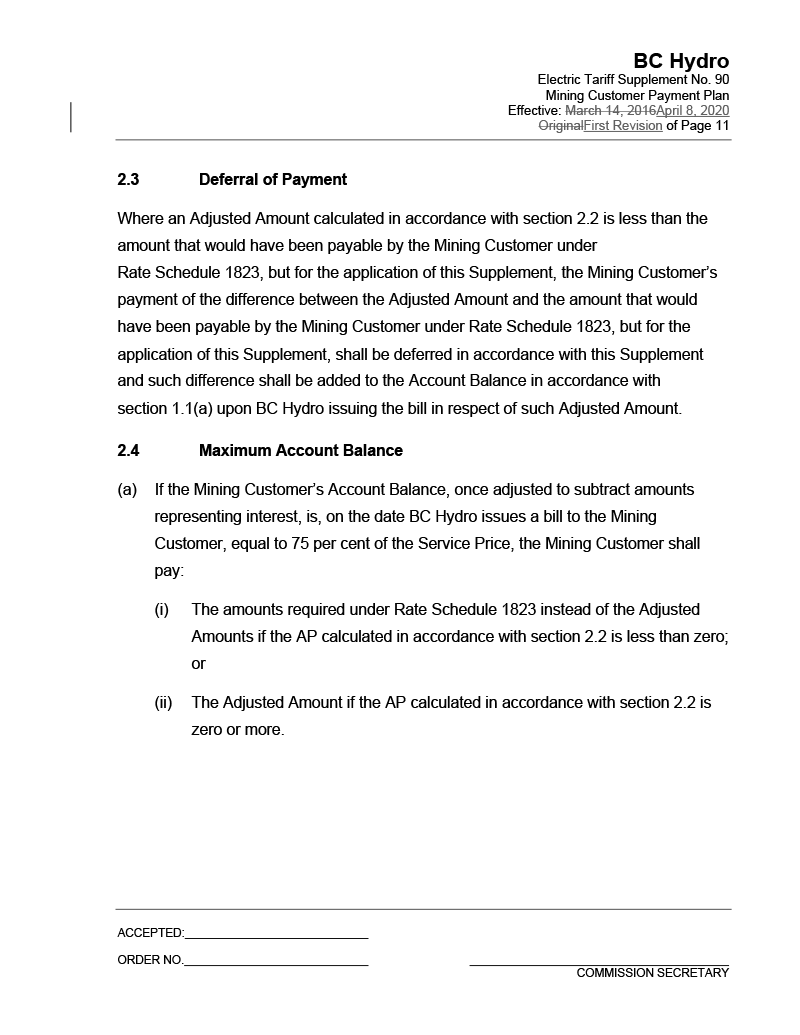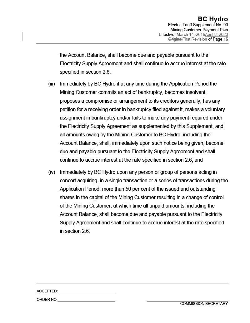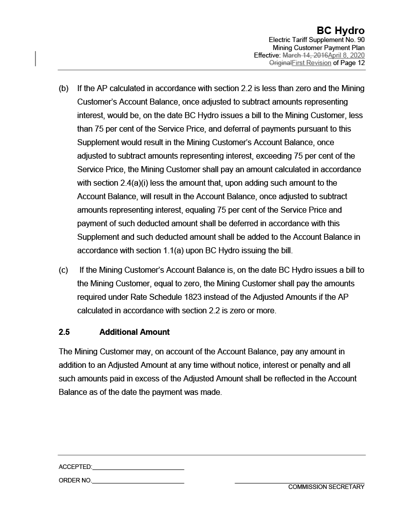 (ii) despite section 3 (3) of the Direction to the British Columbia Utilities Commission Respecting Mining Customers, the balance of the mining customer payment plan regulatory account, and