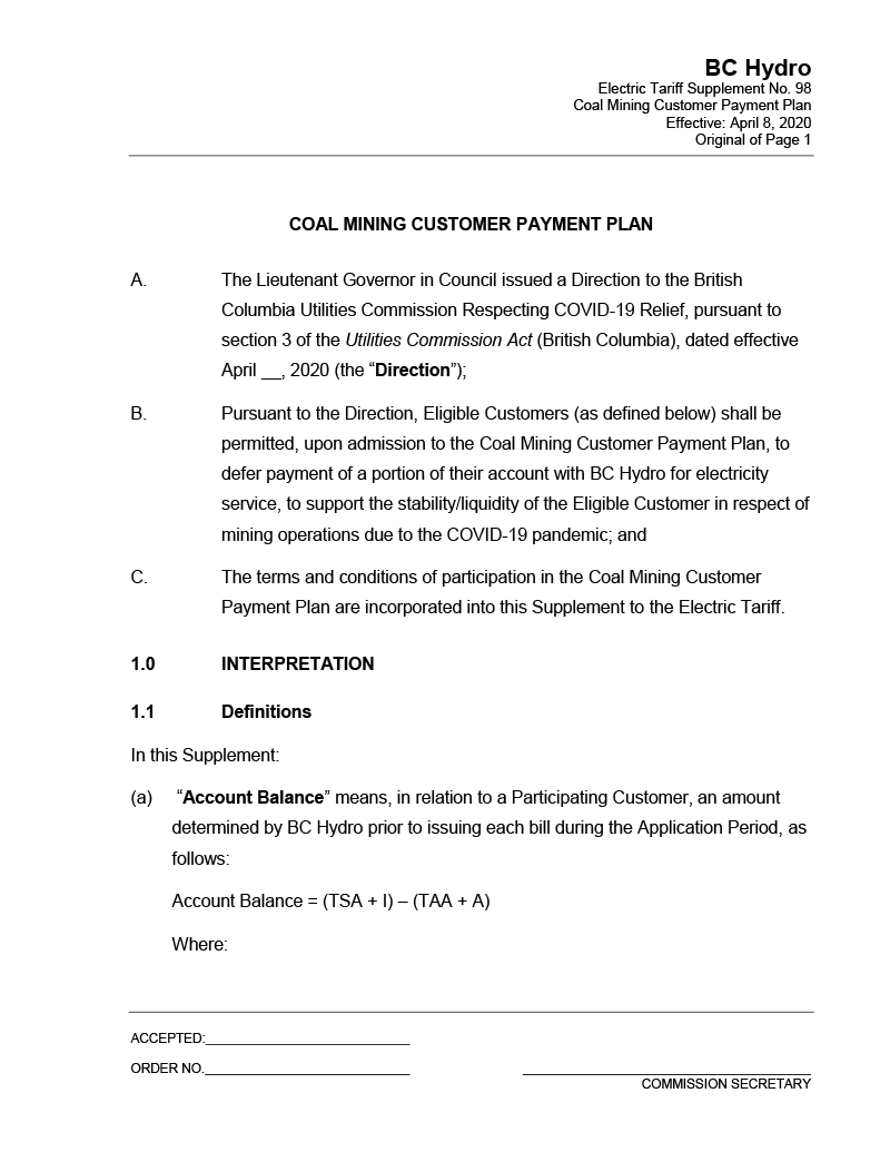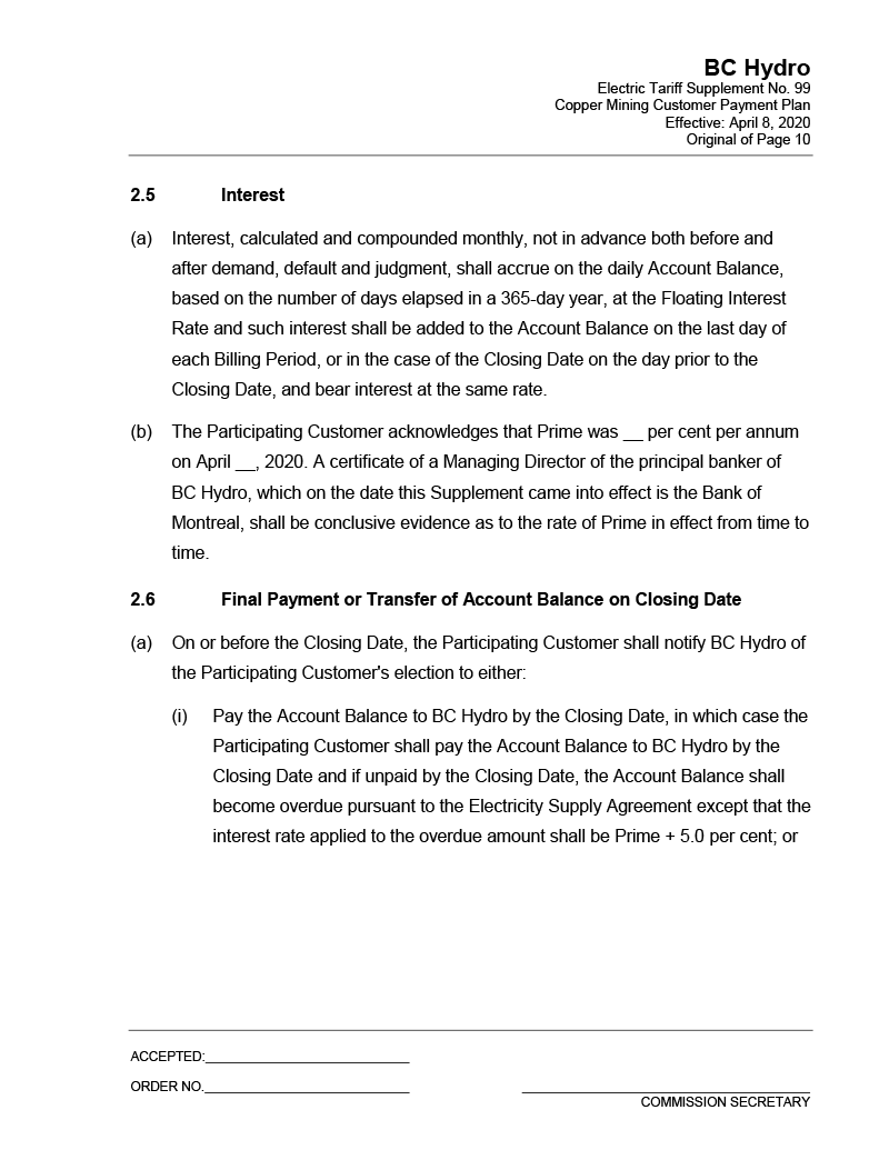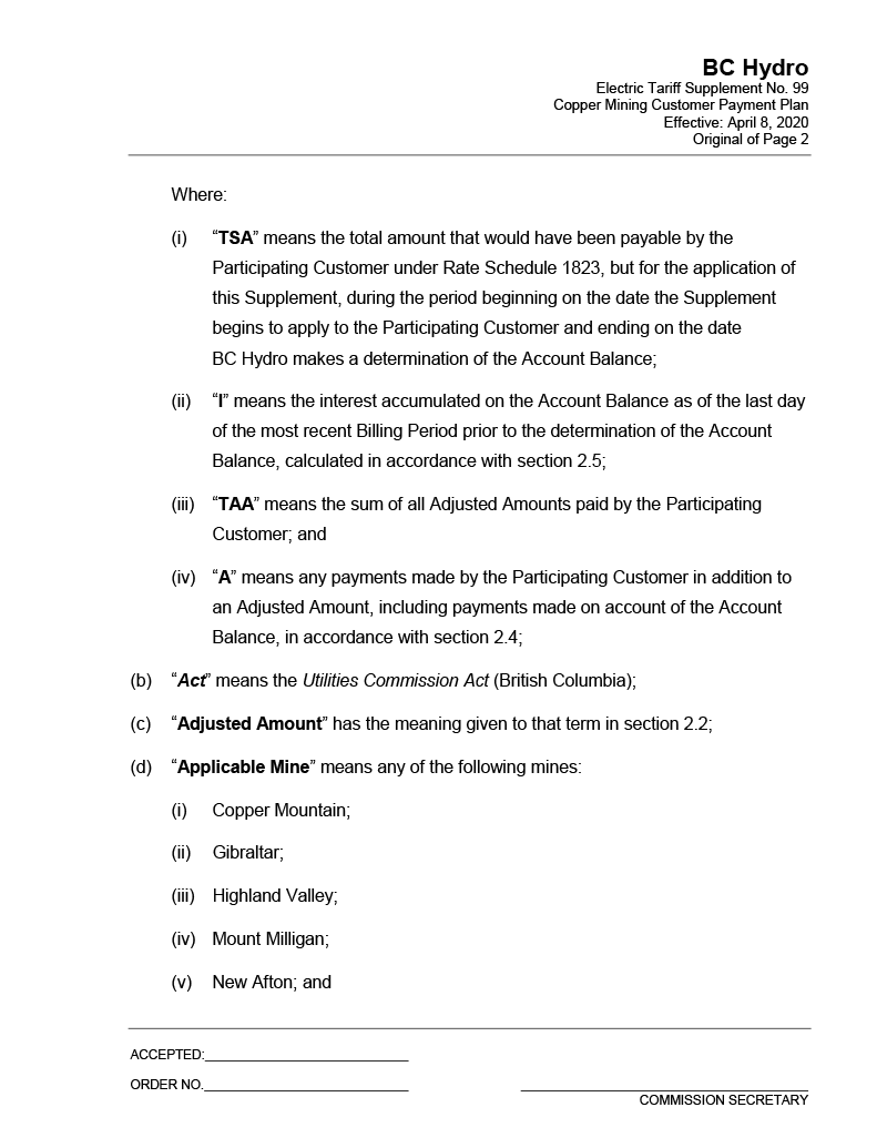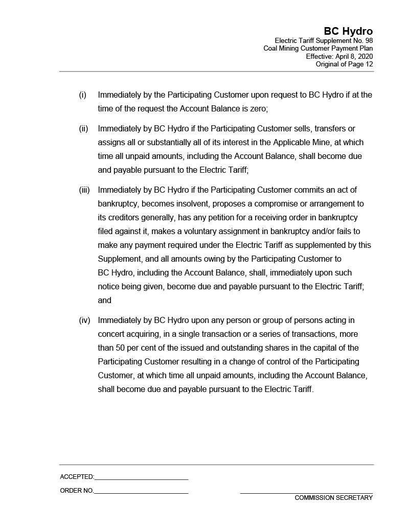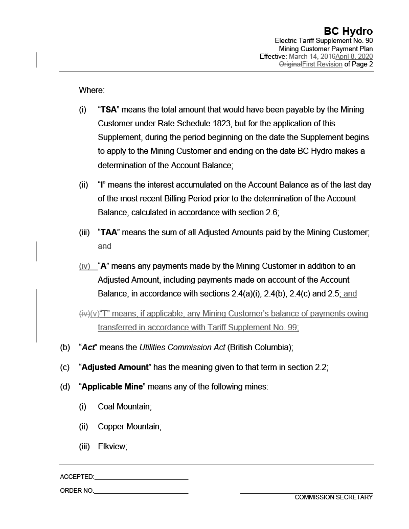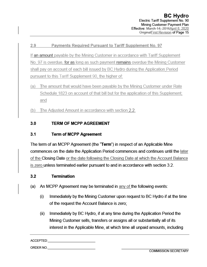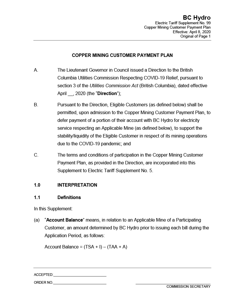 (ii) despite section 3 (3) of the Direction to the British Columbia Utilities Commission Respecting Mining Customers, the balance of the mining customer payment plan regulatory account, and