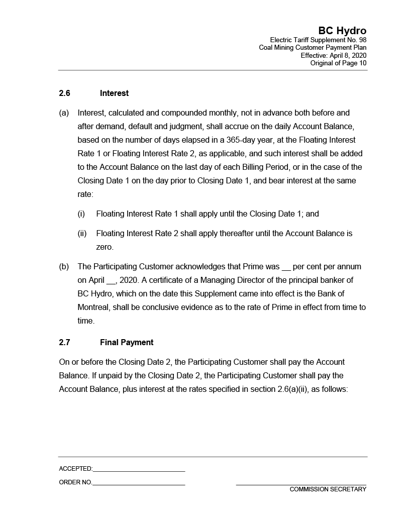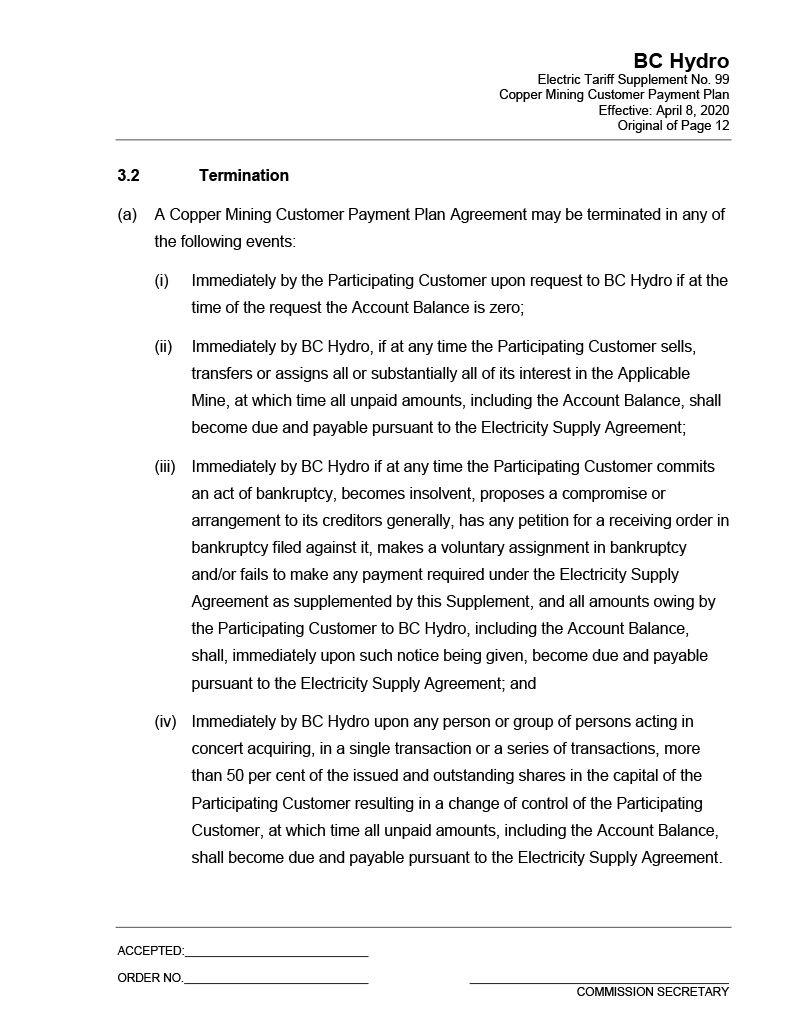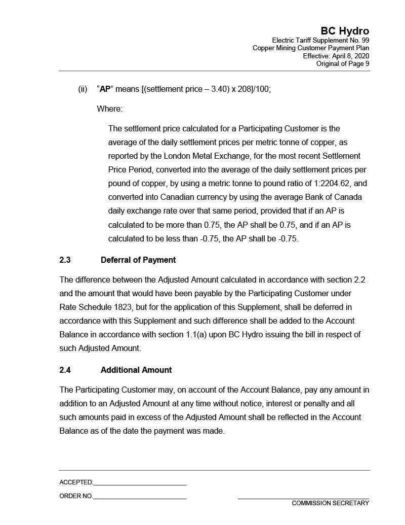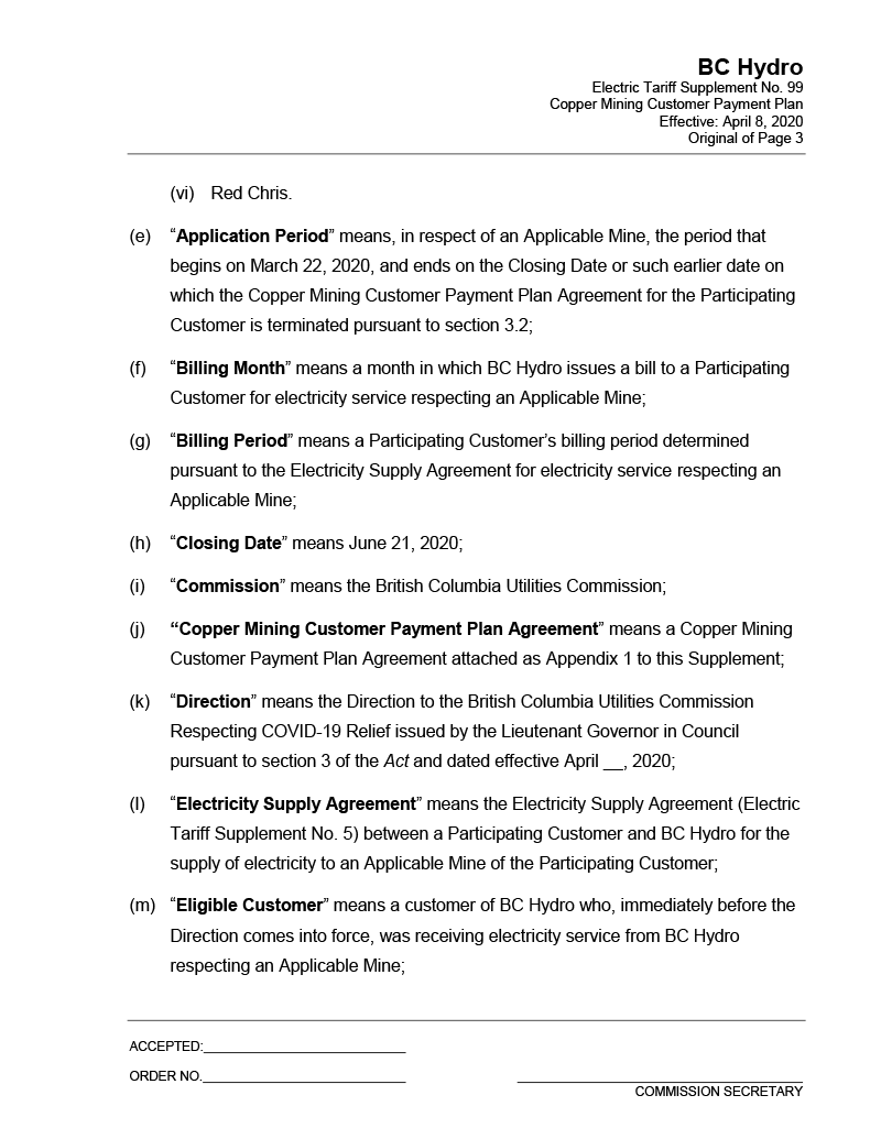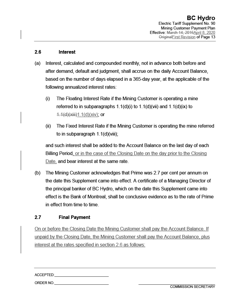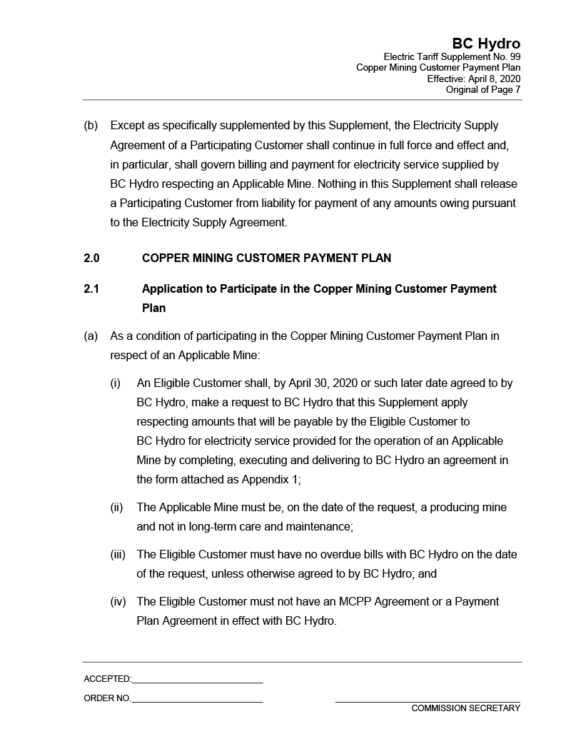 (ii) despite section 3 (3) of the Direction to the British Columbia Utilities Commission Respecting Mining Customers, the balance of the mining customer payment plan regulatory account, and