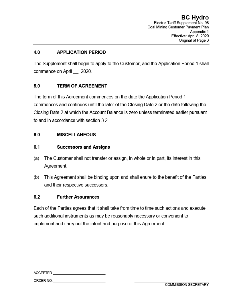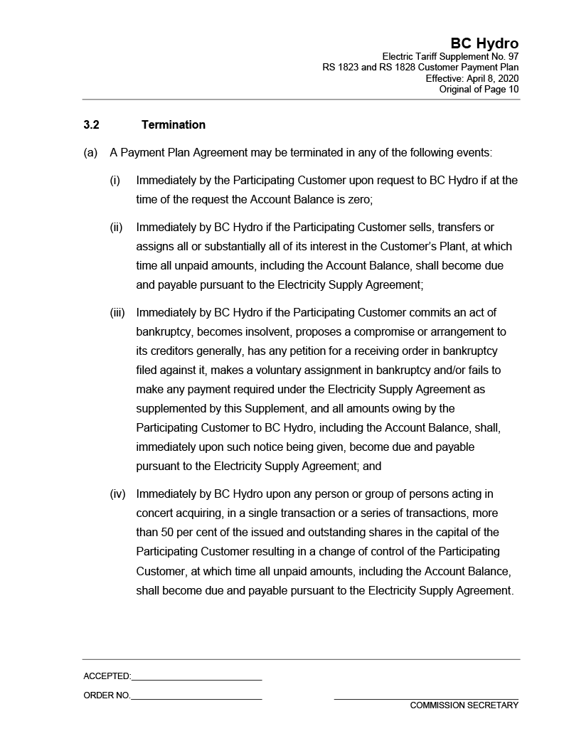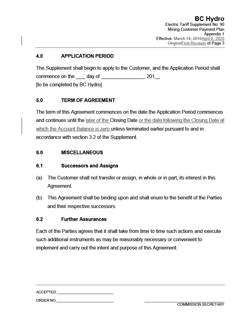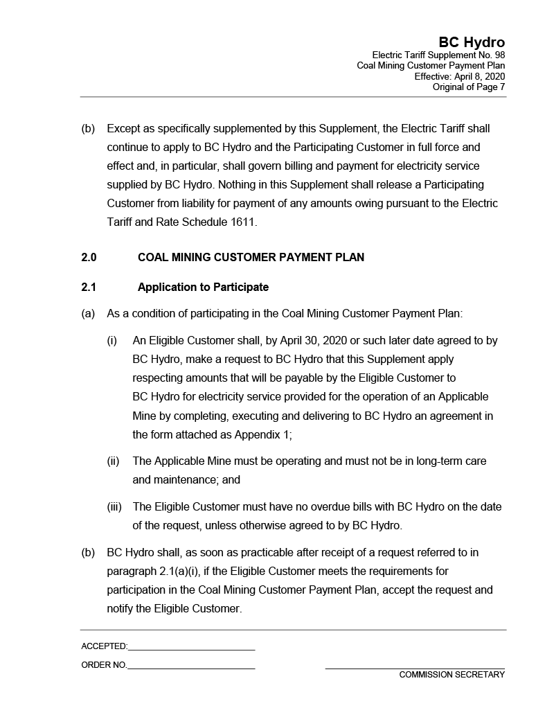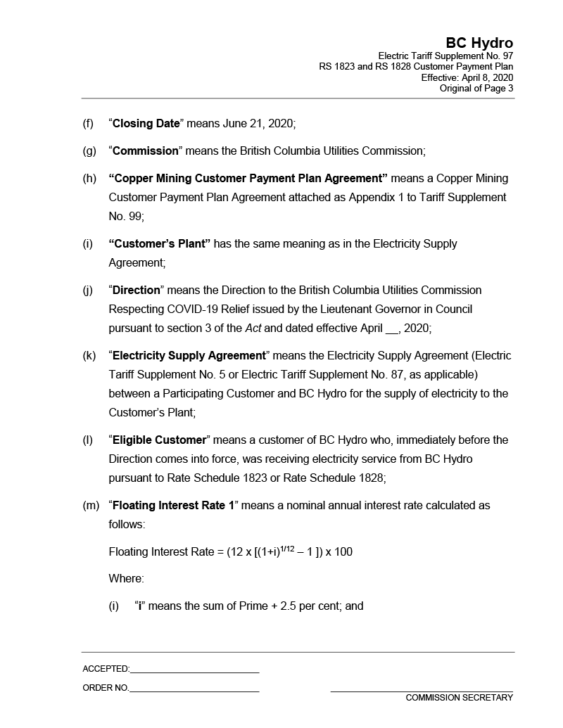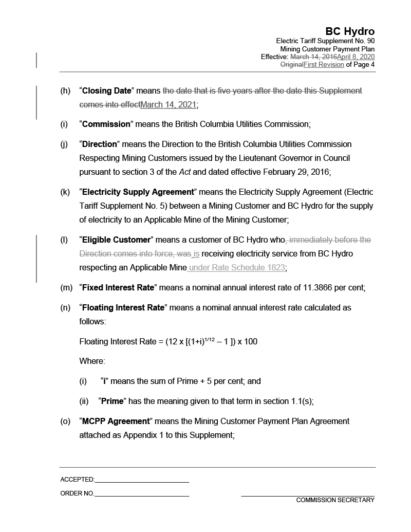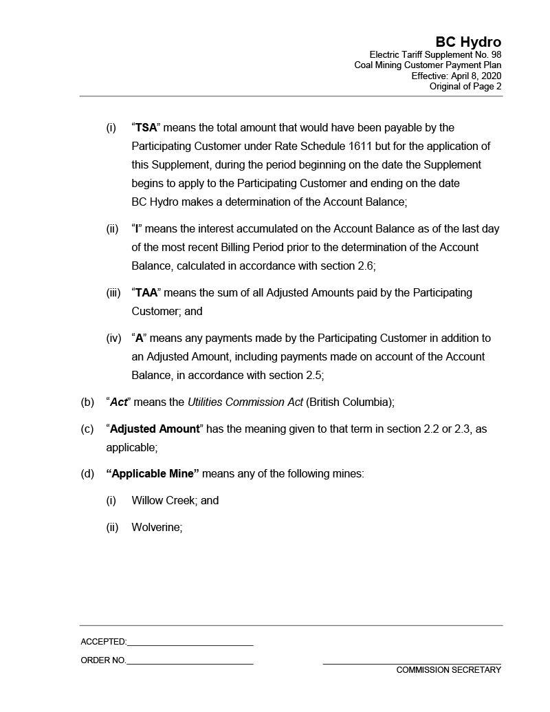 (ii) despite section 3 (3) of the Direction to the British Columbia Utilities Commission Respecting Mining Customers, the balance of the mining customer payment plan regulatory account, and
