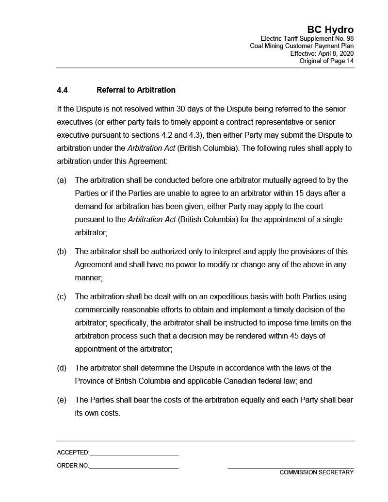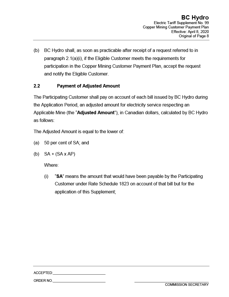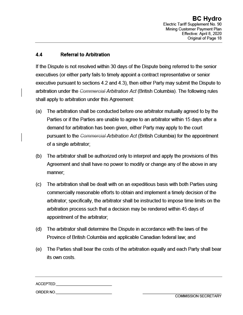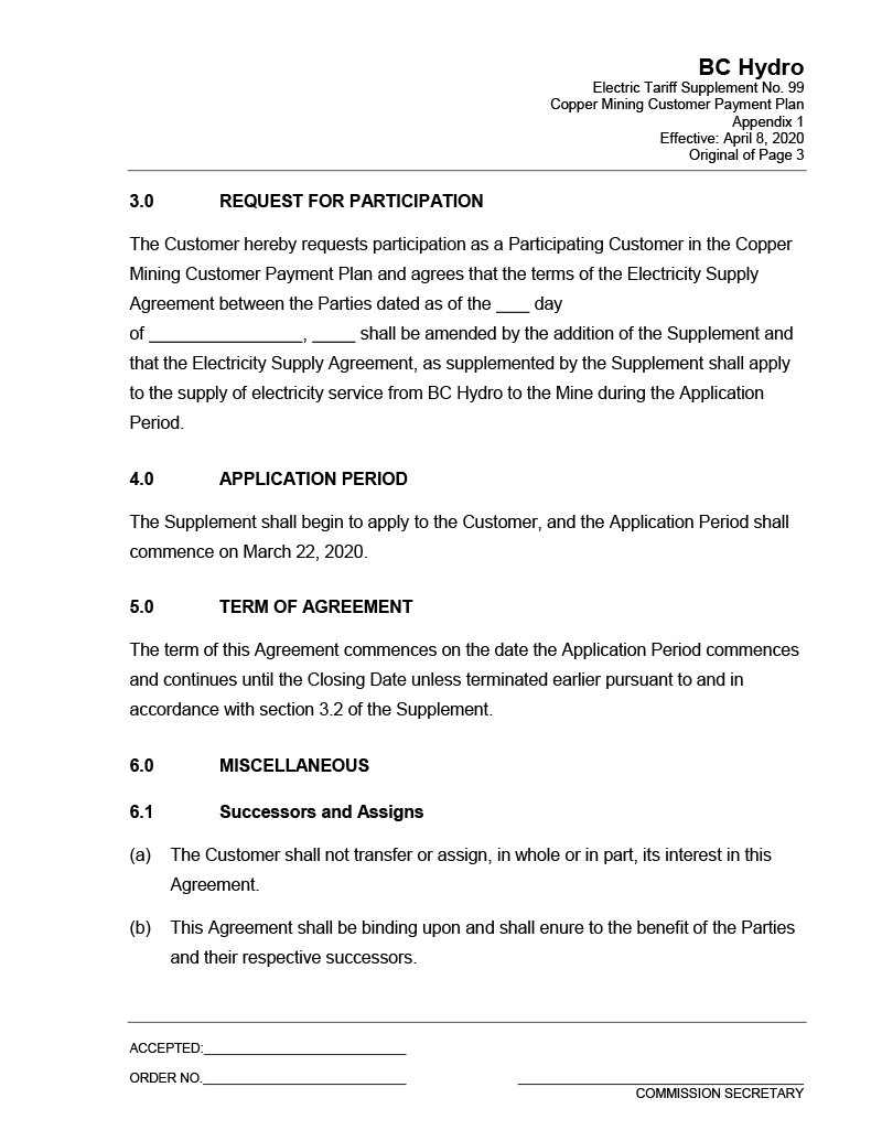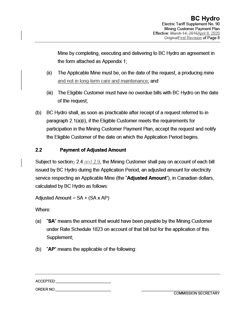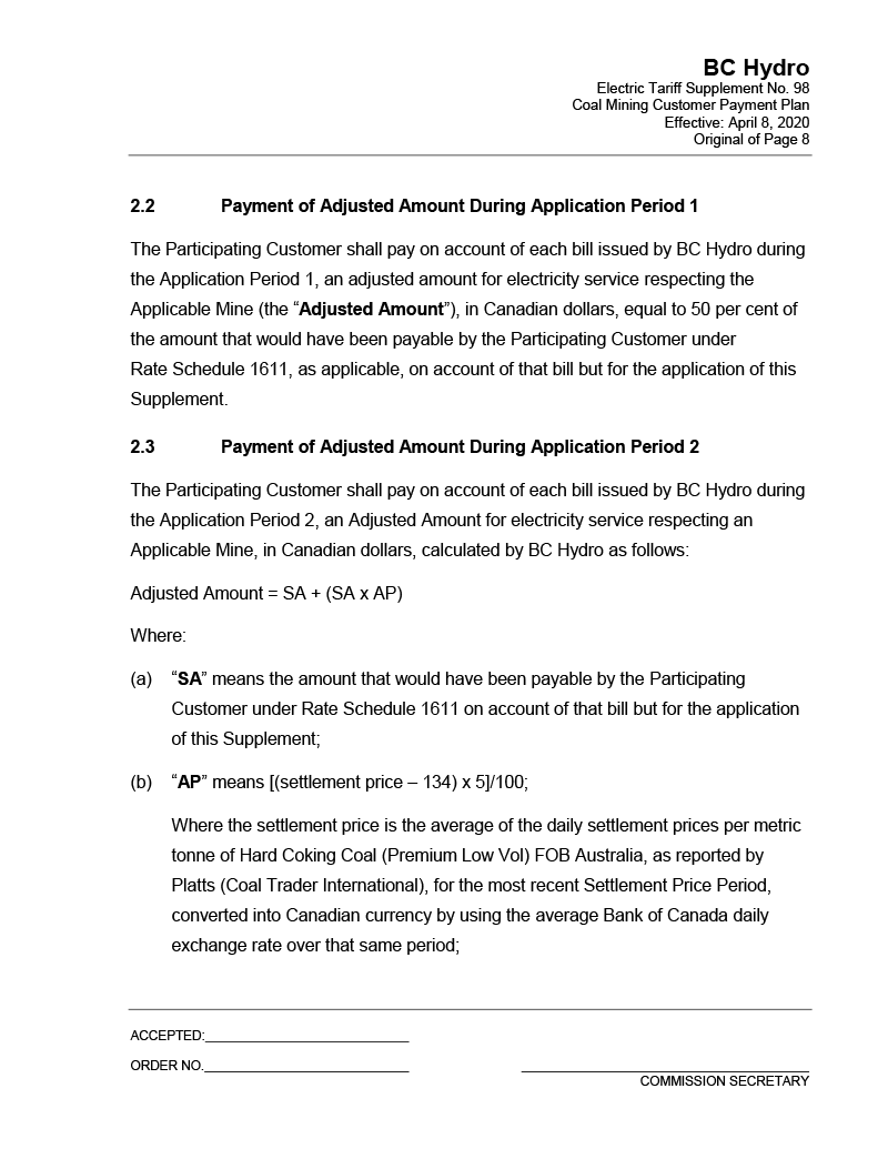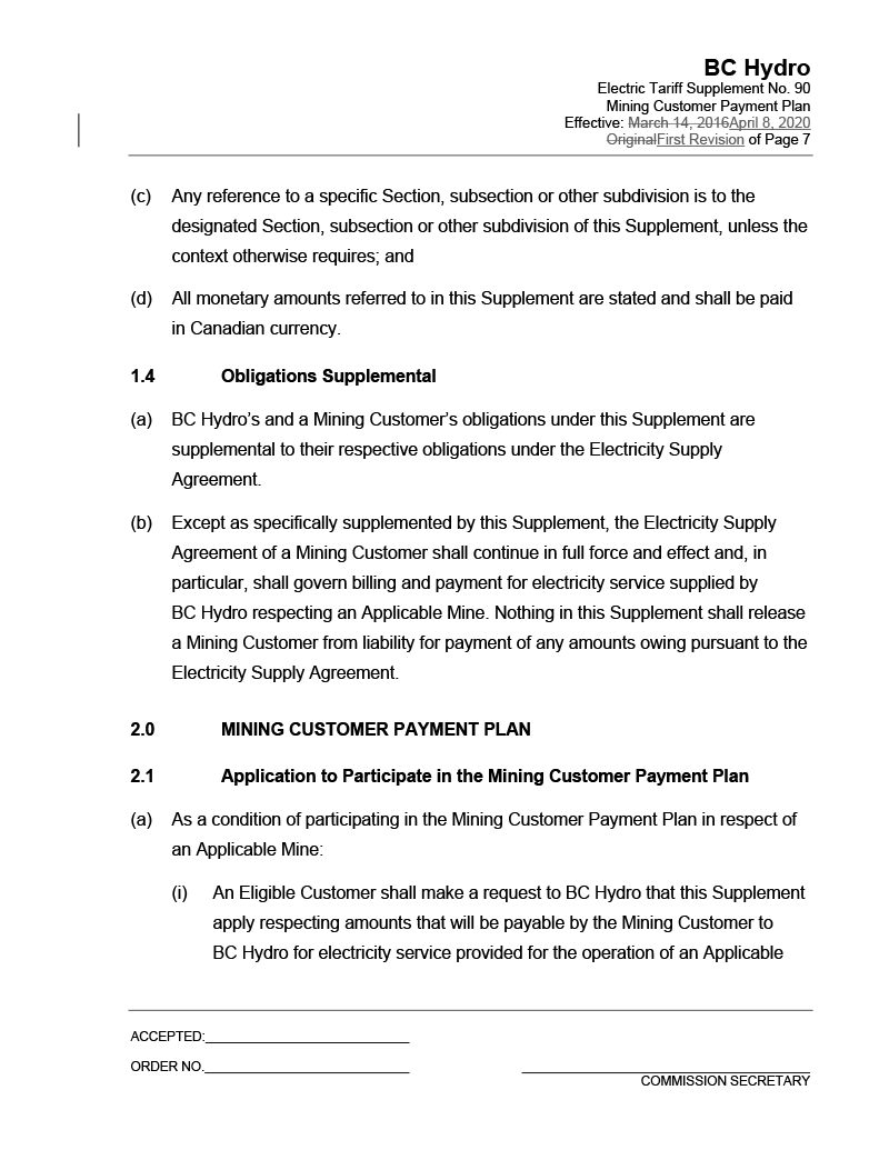 (ii) despite section 3 (3) of the Direction to the British Columbia Utilities Commission Respecting Mining Customers, the balance of the mining customer payment plan regulatory account, and