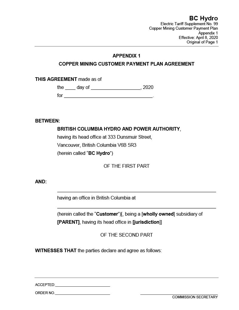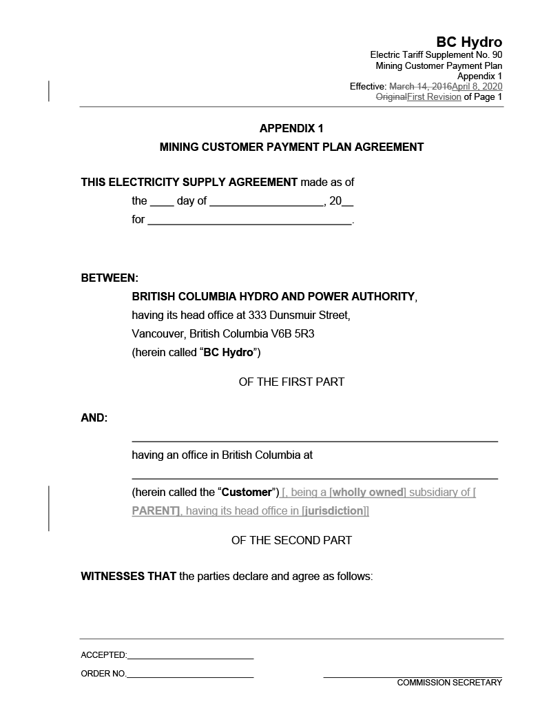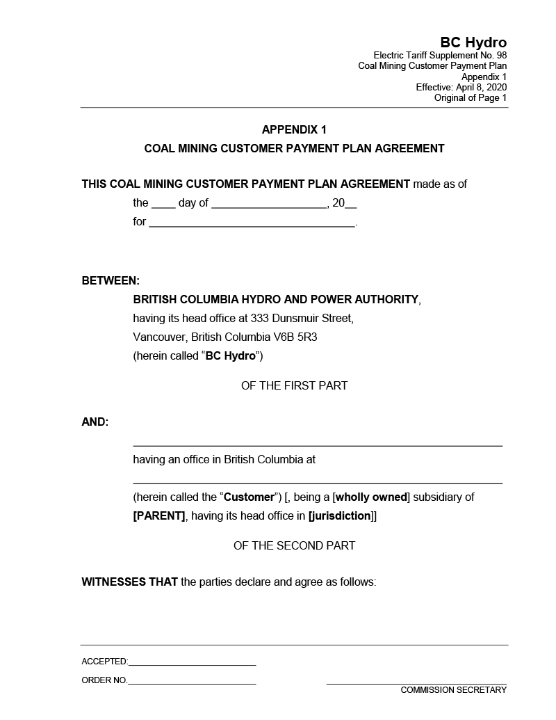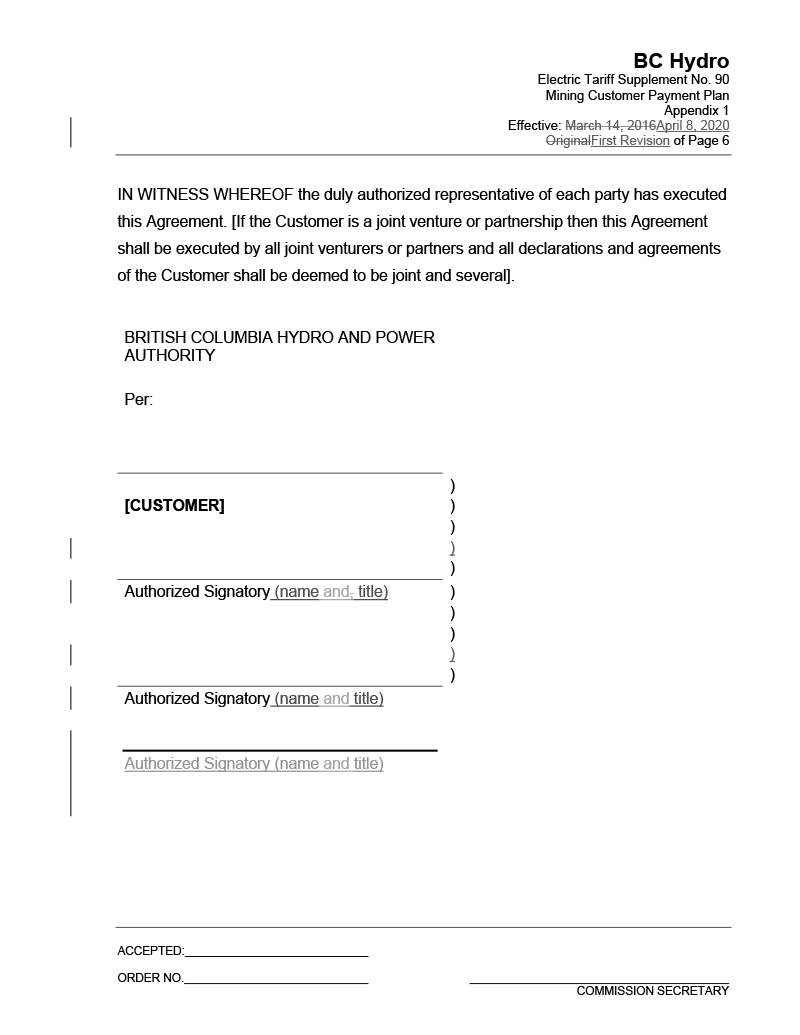 "mining customer payment plan regulatory account" means the regulatory account of the authority approved by commission order G-34-16.