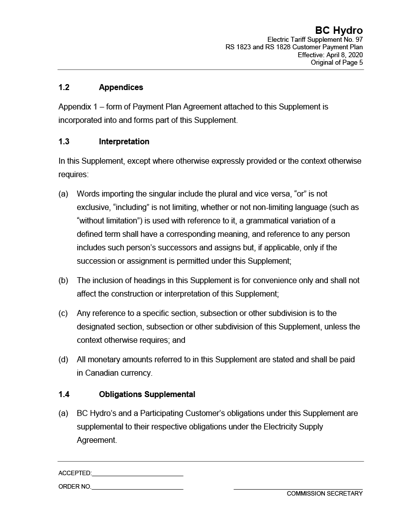 (b) so that the authority's Electric Tariff is amended by amending Tariff Supplement No. 90 and adding Tariff Supplement No. 97, Tariff Supplement No. 98 and Tariff Supplement No. 99, as set out in Appendix B to this direction.