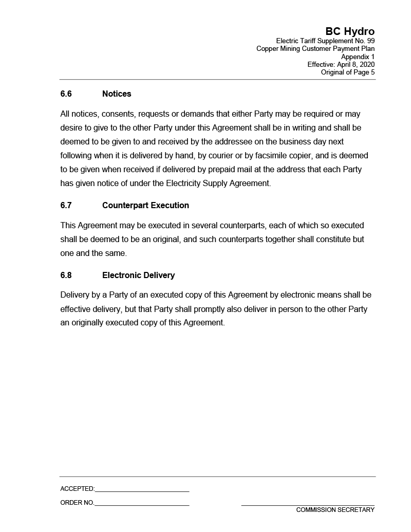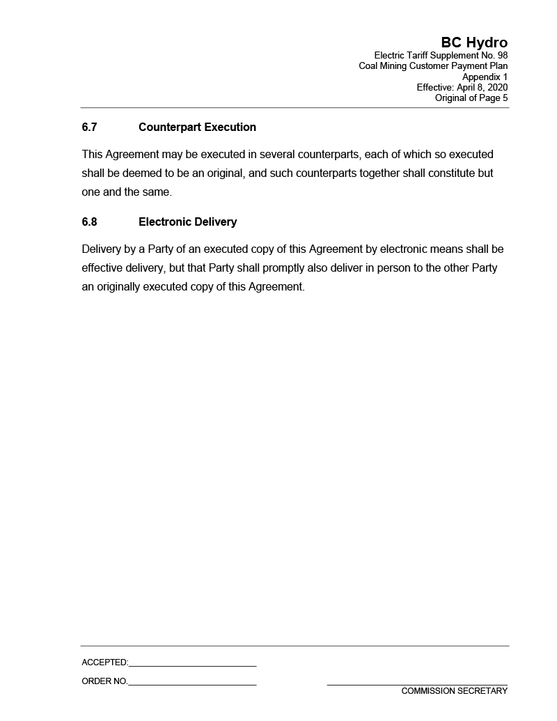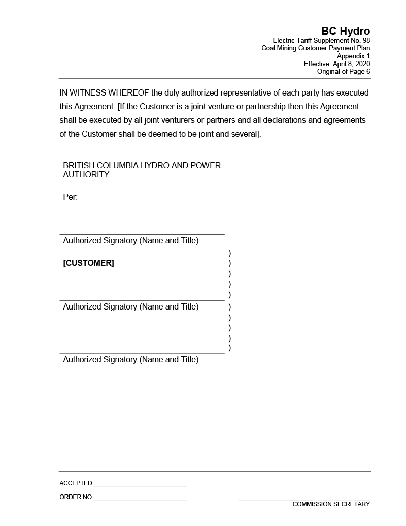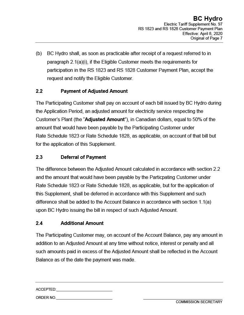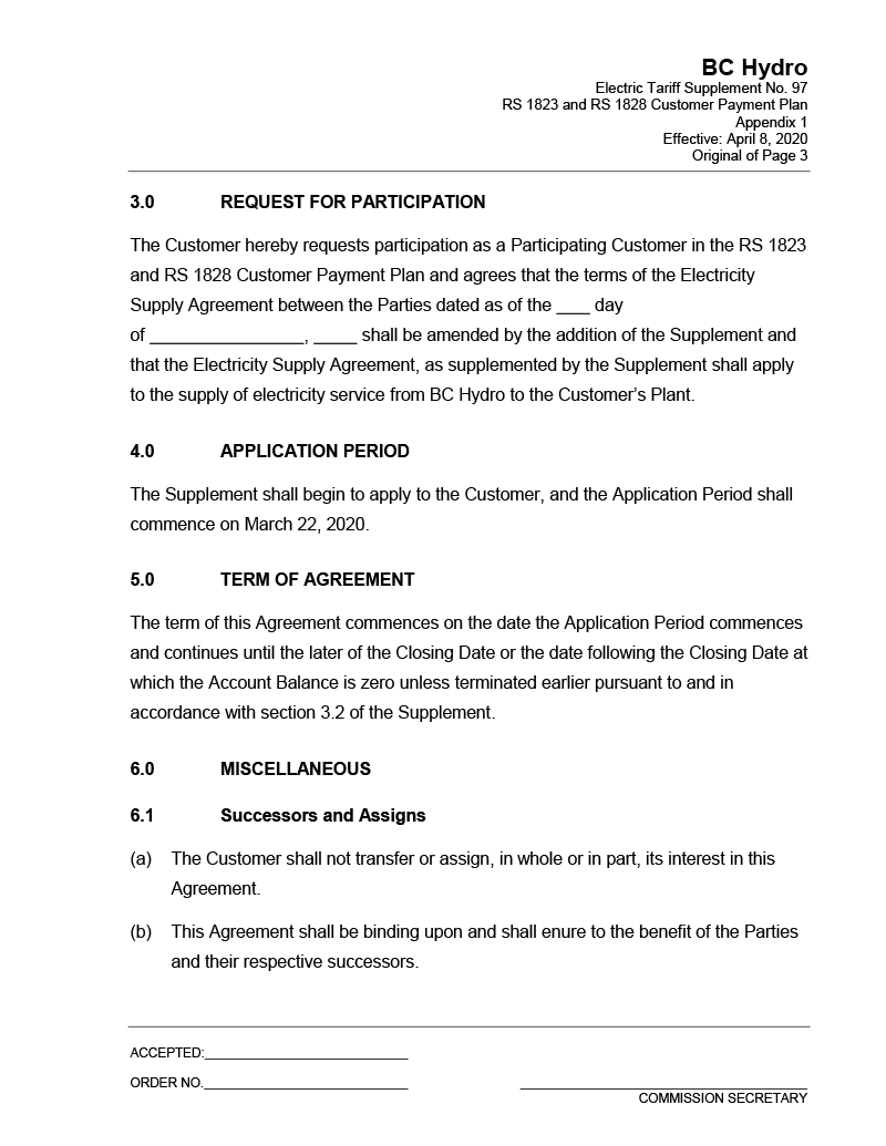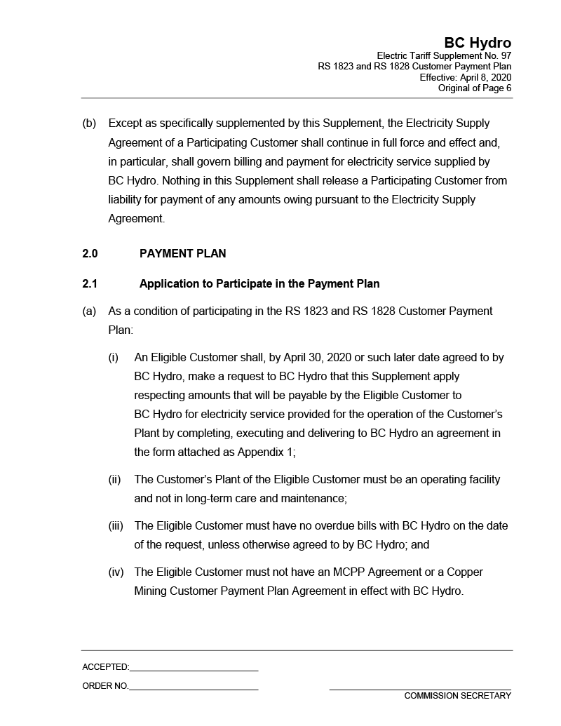 | 6 | Extension of emergency program for eligible industrial customers | |