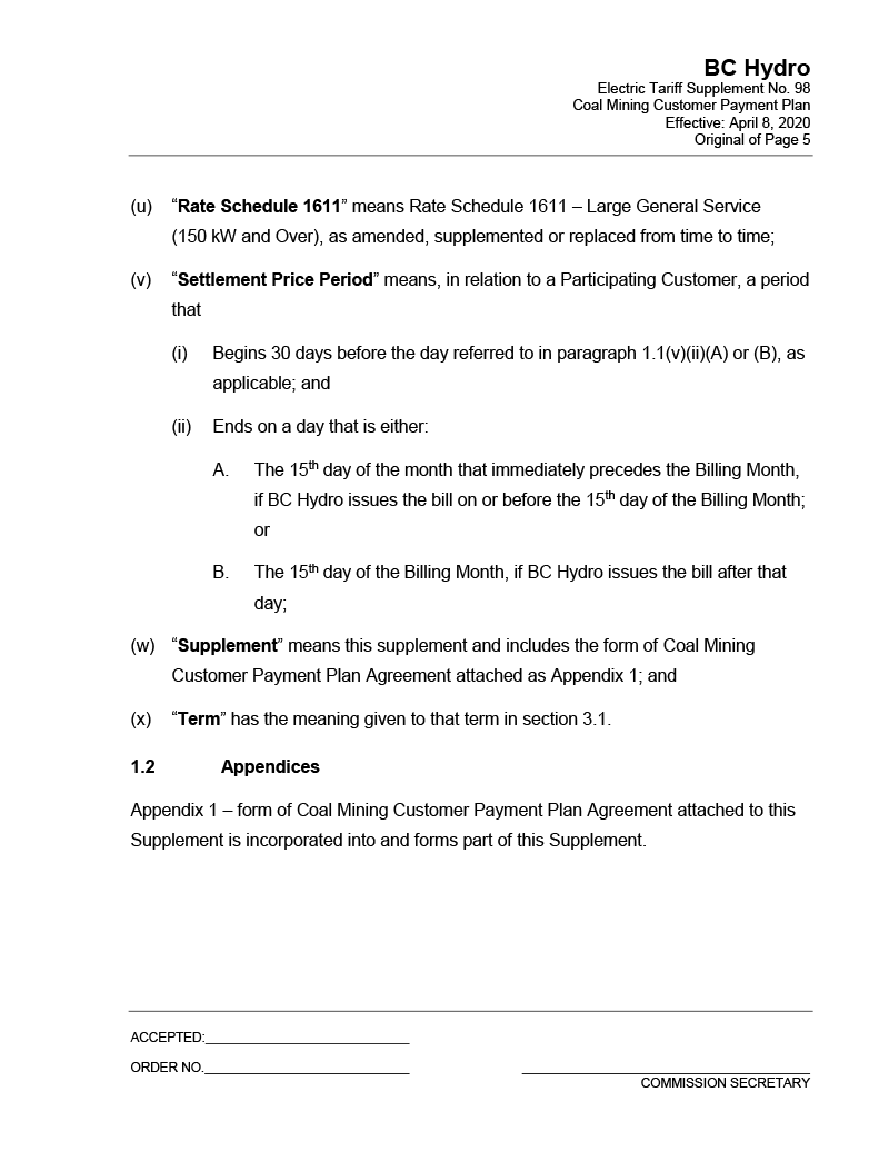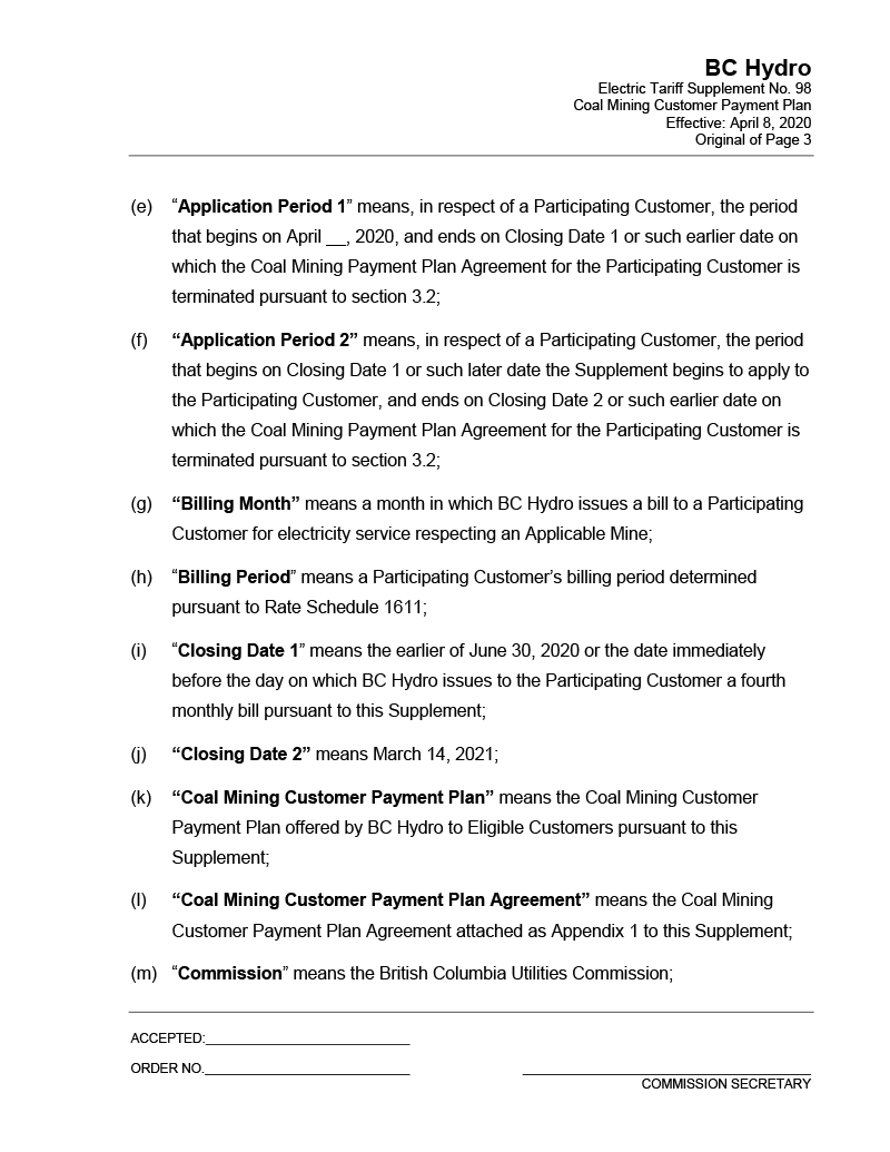 (d) in the definition of "Closing Date 1" in Tariff Supplement No. 98,