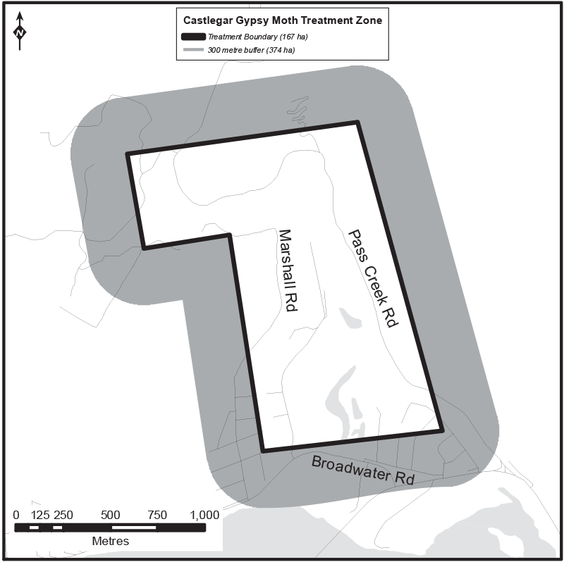 | 1 | Castlegar Gypsy Moth Treatment Zone | April 15, 2020 to June 30, 2020 | April 15, 2020 to October 30, 2020 |