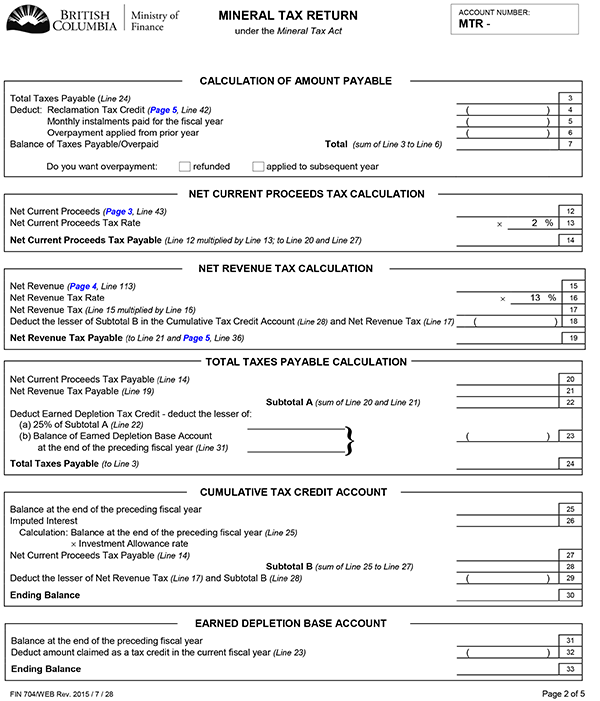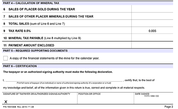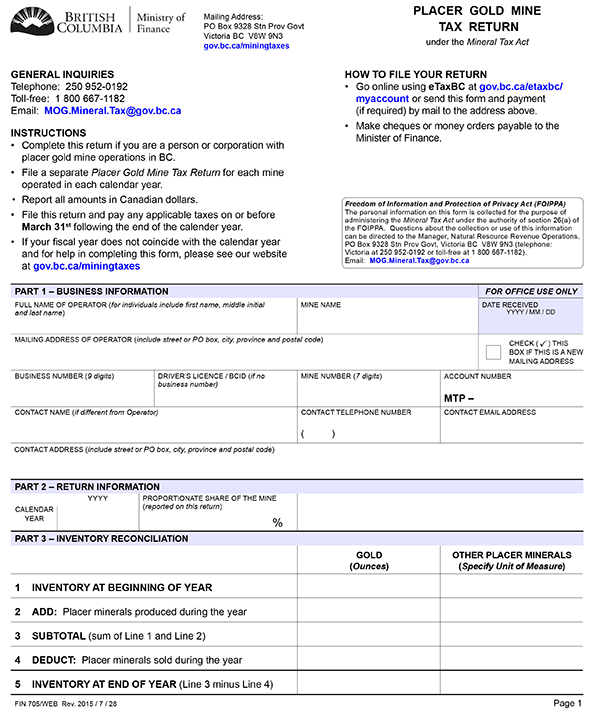 (2) A return delivered by an operator of a placer gold mine to the commissioner under section 12 (1.1) of the Mineral Tax Act must be in the form set out in Schedule C.