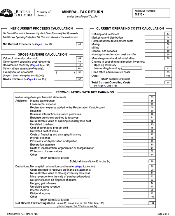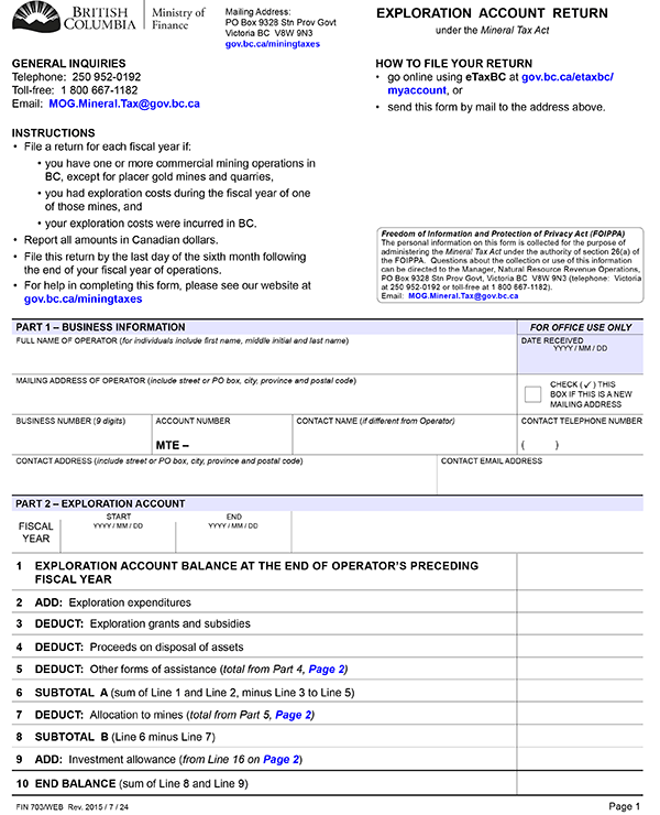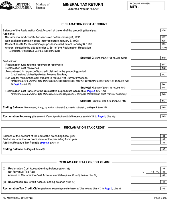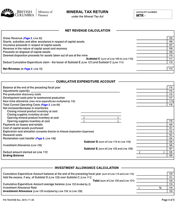 (4) A return delivered for an operator's exploration account under section 12 (7) of the Mineral Tax Act must be in the form set out in Schedule E.
