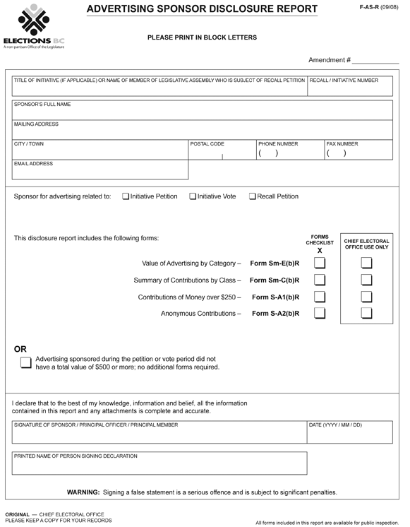 | 1 | Advertising sponsor disclosure report forms | |