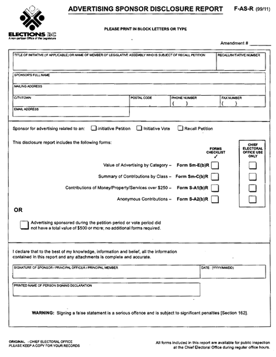 Schedule Forms F-AS-R and S-A1(b)R BEFORE amended by BC Reg 16/2010, effective January 15, 2010.