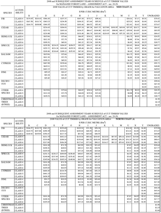 (a) with respect to a coastal area, the quality of cut timber as defined in the Schedule of Coast Timber Grades under the Scaling Regulation, B.C. Reg. 446/94, and