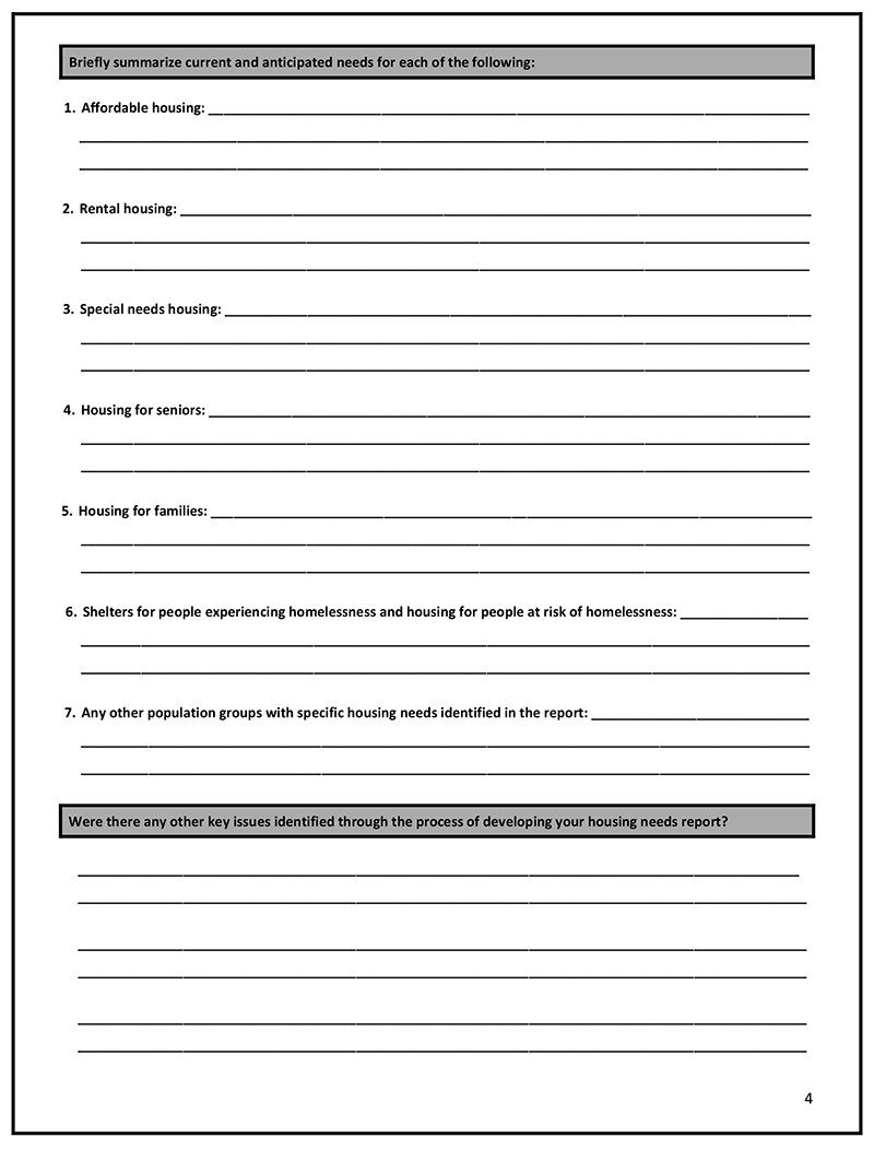 (b) in relation to each subsequent housing needs report of the local government, for the past 10 years.