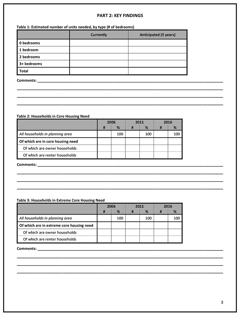 (b) in relation to each subsequent housing needs report, for the past 10 years.