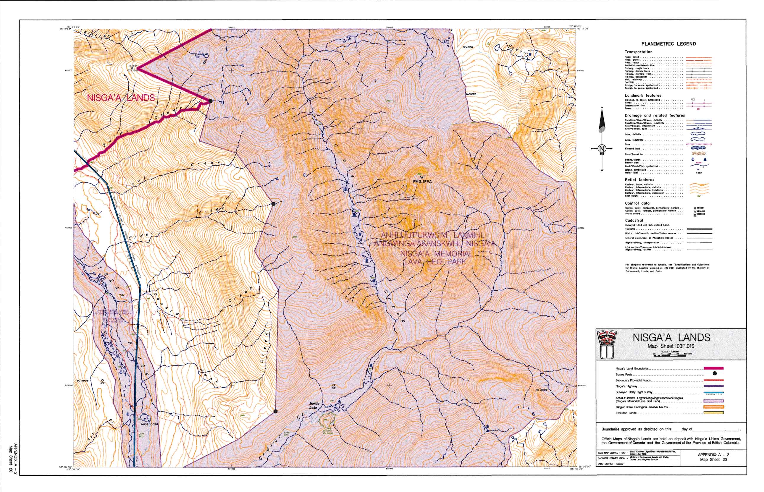 Despite the above date, the Schedule to the Act, including the Map of Nisg̱a'a Lands and the Appendices, is current to May 11, 2000. See "Amending Agreements" for amendments to the Schedule.
