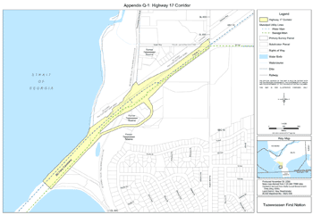 | Corporation of Delta | Municipal Water and Sewage Mains | Along the south side of Highway 17 to the BC Ferries causeway, through Former Tsawwassen Reserve | Engineering drawings on file with the Corporation of Delta |