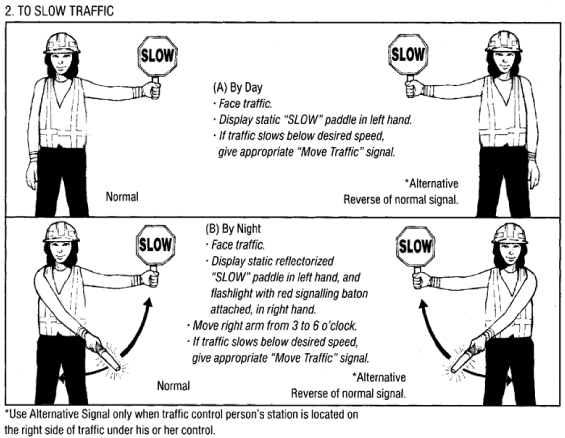 (2) A traffic control person must use the normal signals shown in Figure 18-2 when stationed on the driver's (left) side of the traffic lane under the TCP's control.