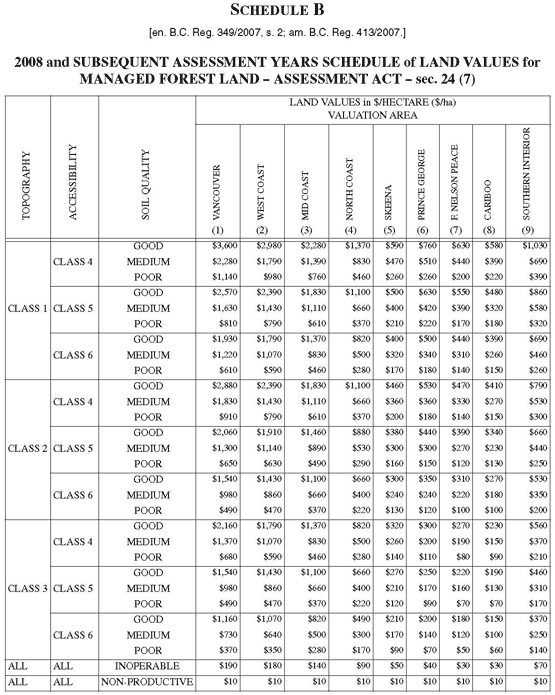 Schedule B BEFORE amended by BC Reg 371/2010 effective December 17, 2010.
