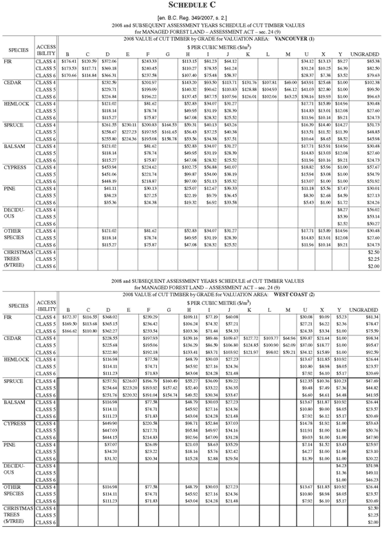 (a) with respect to a coastal area, the quality of cut timber as defined in the Schedule of Coast Timber Grades under the Scaling Regulation, B.C. Reg. 446/94, and
