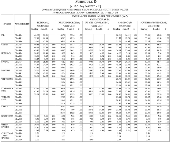 Schedule D BEFORE amended by BC Reg 371/2010 effective December 17, 2010.