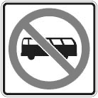 ![]() 60 x 60 cm ![]() 60 x 60 cm | BUS SIGNS (Regulatory) These signs indicate that buses are either permitted (green circle) or prohibited (red circle with diagonal line). Arrow tabs or text identifying the lanes may be used below these signs to indicate bus routes or lane designations. The bus symbol may be combined within any sign to convey information or regulation that pertains to bus traffic only. Conditional tabs may be added below these signs to specify vehicle types, time of day, day of week or Gross Vehicle Weight limits. Colour: Black and red or green on white reflectorized background. | |
