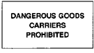 ![]() 60 x 60 cm | DANGEROUS GOODS PROHIBITION SIGN (Regulatory) This sign indicates that vehicles transporting dangerous goods as defined in the Transport of Dangerous Goods Act are prohibited from travelling upon a street or highway. Colour: White background, red circle and centre slash, black centre diamond and border. White and red reflectorized. |