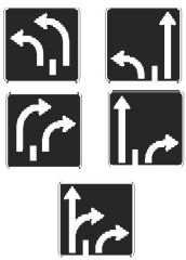 ![]() 60 x 60 cm | LANE USE SIGNS (Regulatory) These signs, when erected on the shoulder of the road, indicate the mandatory lane use arrangement at the next intersection. Colour: White reflectorized arrows and borders on black backgrounds. |