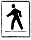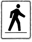 ![]() 60 x 60 cm | PEDESTRIAN (Warning) Pedestrians may be walking along or crossing the highway at any time. Colour: Black on yellow reflectorized background. | |