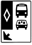 | Colour: Black on white reflectorized background. White reflectorized diamond on black background. Any of these signs may be modified by the addition of times and days during which the bus lane regulations are applicable. | |