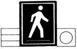 ![]() 60x75 cm (Sign) 20 cm (Lens) (Right Side) ![]() 60 x 75 cm (Sign) 20 cm (Lens) (Left Side) | SPECIAL PEDESTRIAN CROSSWALK (Regulatory) These signs mark the site of a pedestrian crosswalk. Motorists are required to yield the right of way to pedestrians within the crosswalk in accordance with the law. Two signs are to be mounted overhead per approach with each pedestrian symbol oriented to face toward the centre of the roadway. One sign shall be located over the right side of the roadway and the other sign shall be located over the left side of the roadway. Each overhead sign shall contain internal illumination, down lighting for the crosswalk area, and one flashing yellow beacon. The two flashing yellow beacons per approach shall flash alternately and be pedestrian activated. Colour: White symbol and border on black background. | |