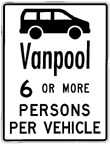 ![]() 90 x 120 cm | VANPOOL (Regulatory) This sign, when erected in advance of a traffic lane, indicates the required occupancy in order for a vehicle, other than a bus, to use that lane. Colour: Black on white reflectorized background. | |