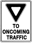 ![]() 90 x 120 cm | YIELD TO ONCOMING TRAFFIC (Regulatory) This sign indicates a single lane situation. Yield to all oncoming traffic, stopping if necessary. Colour: Black and red on white. Red and white reflectorized. |